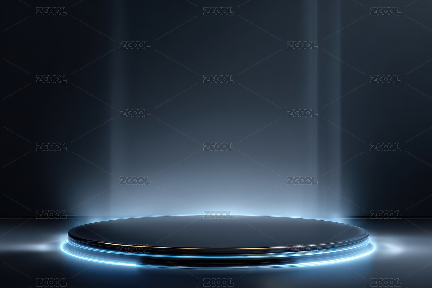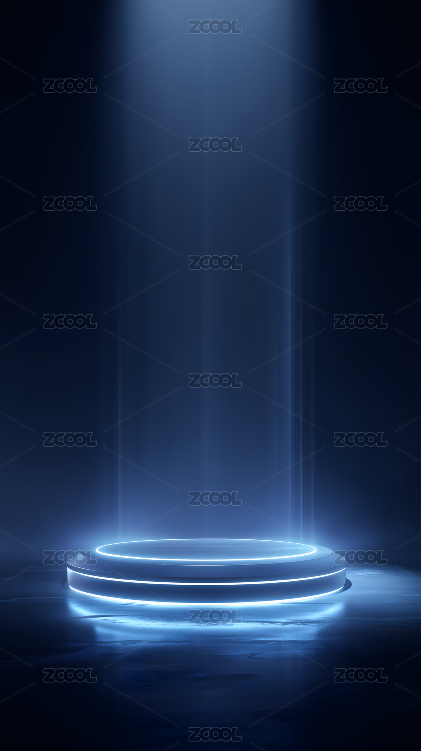 蓝色光效环绕的圆形展示台