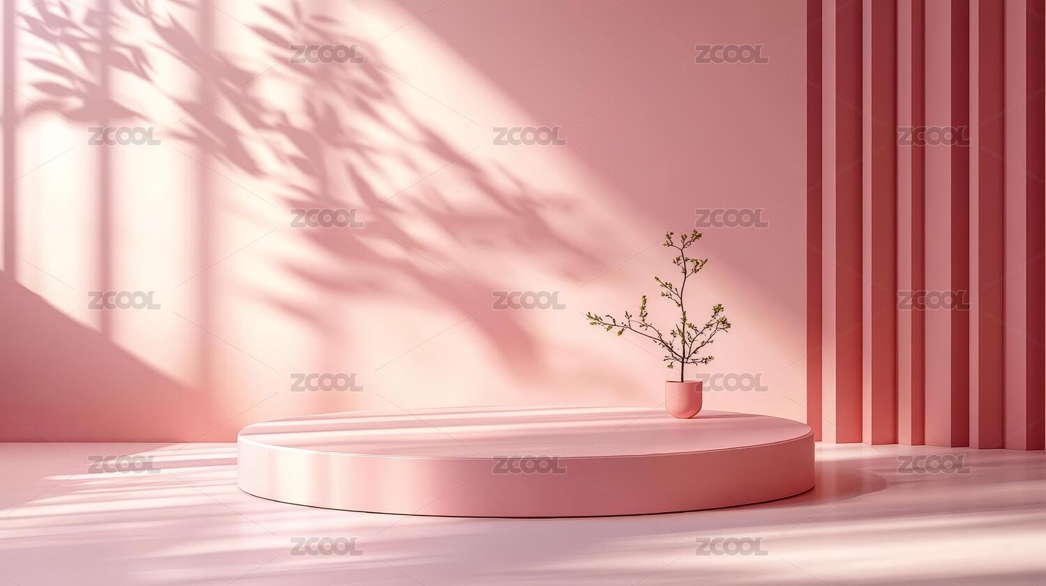 粉色极简产品展示台摆放盆栽