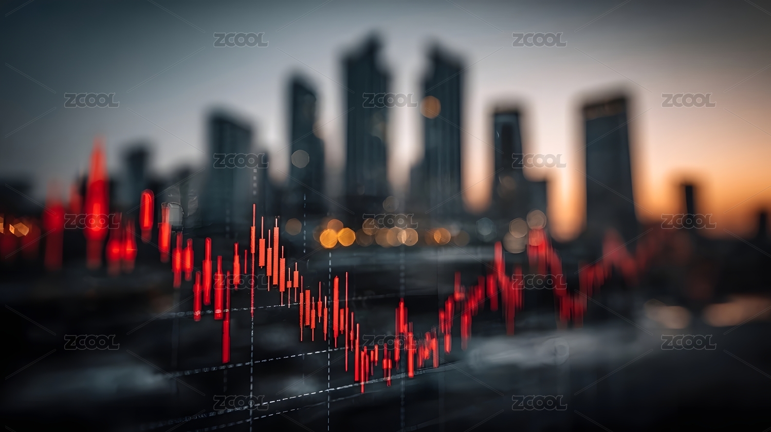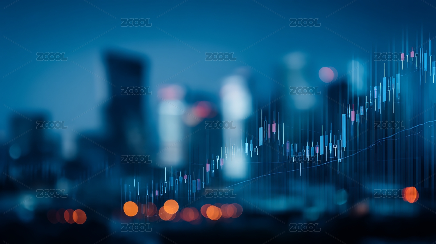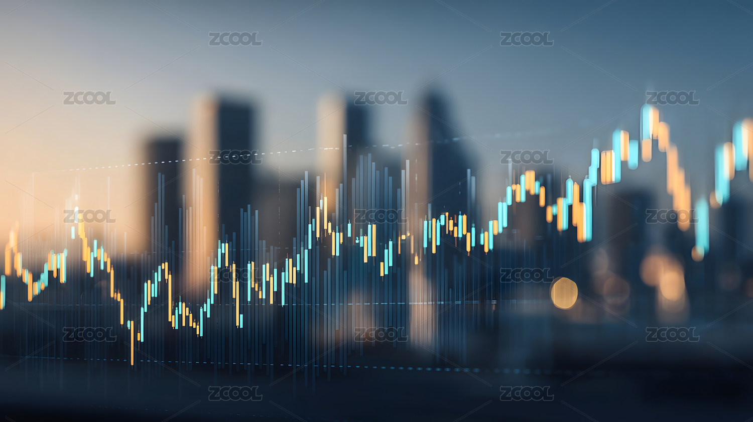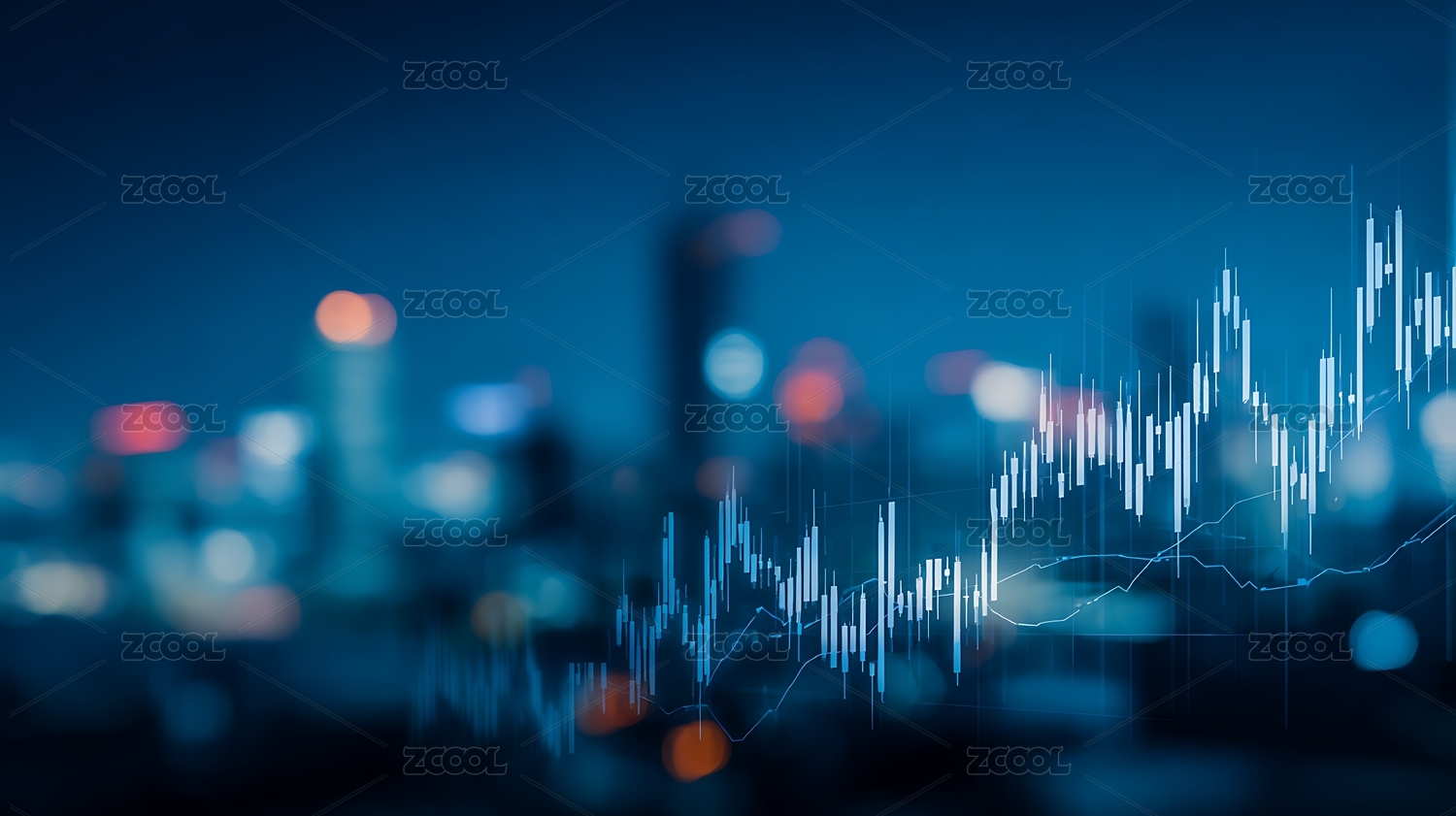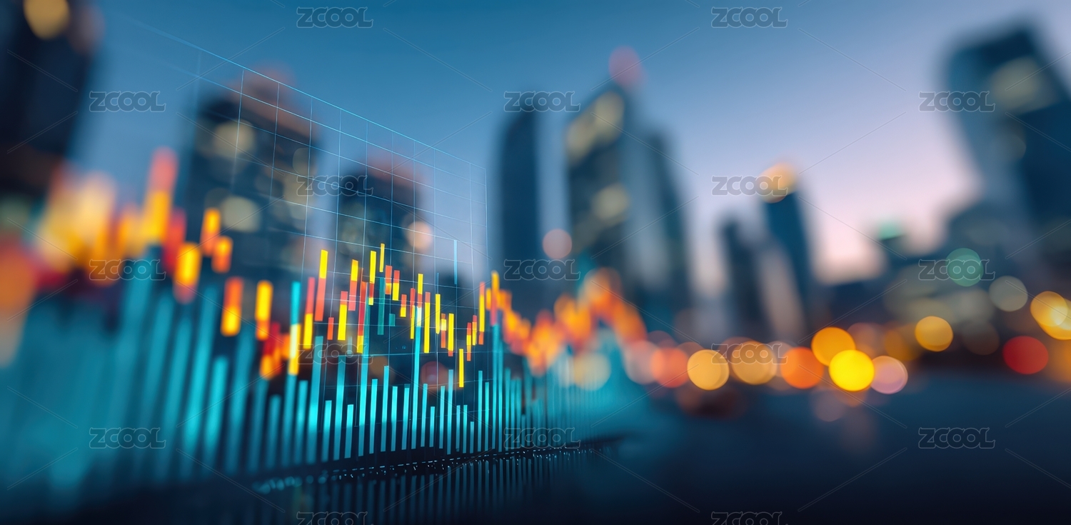 金融数据图表城市背景图