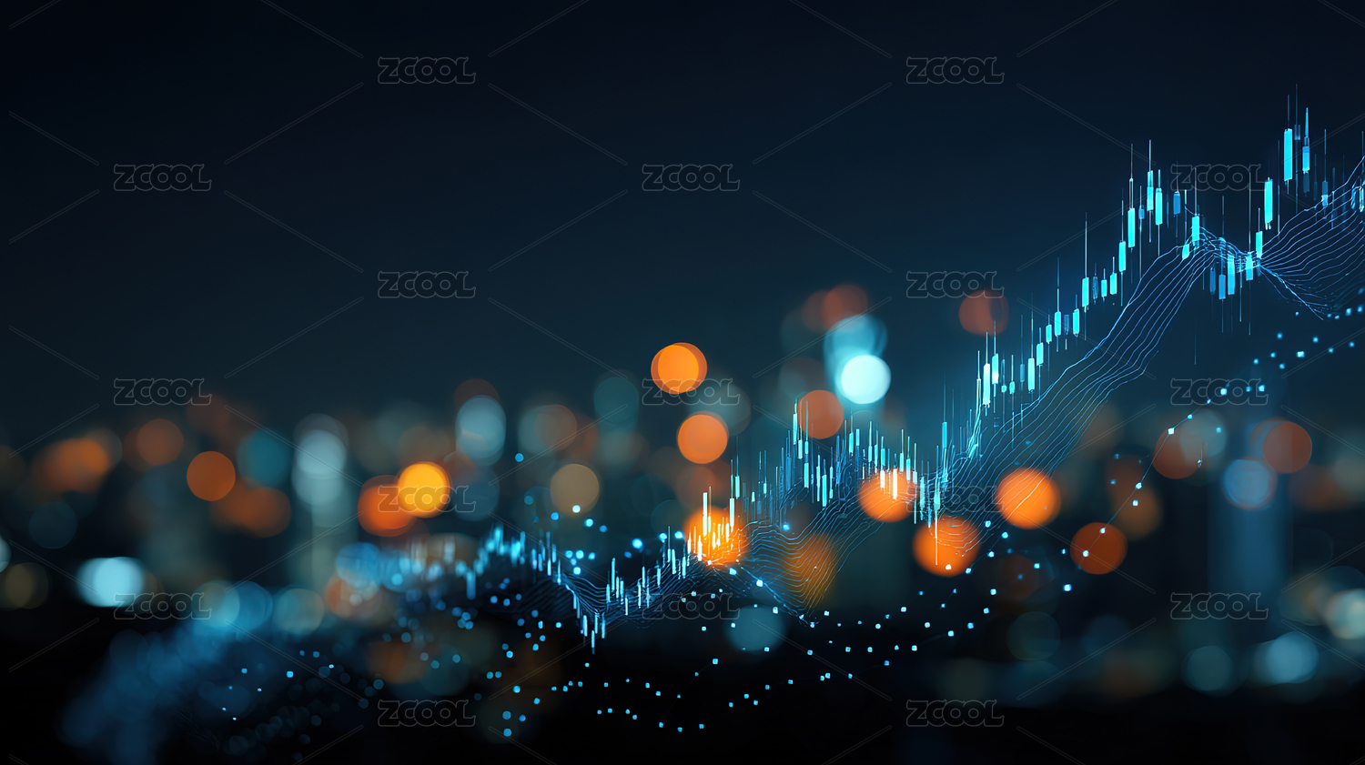 城市夜景与金融数据可视化融合背景图