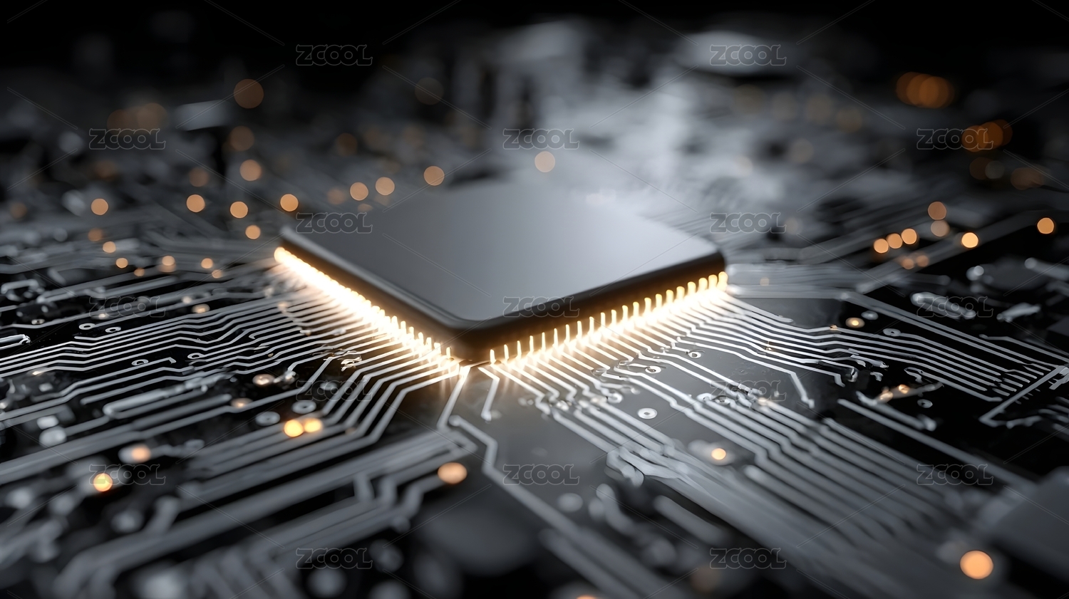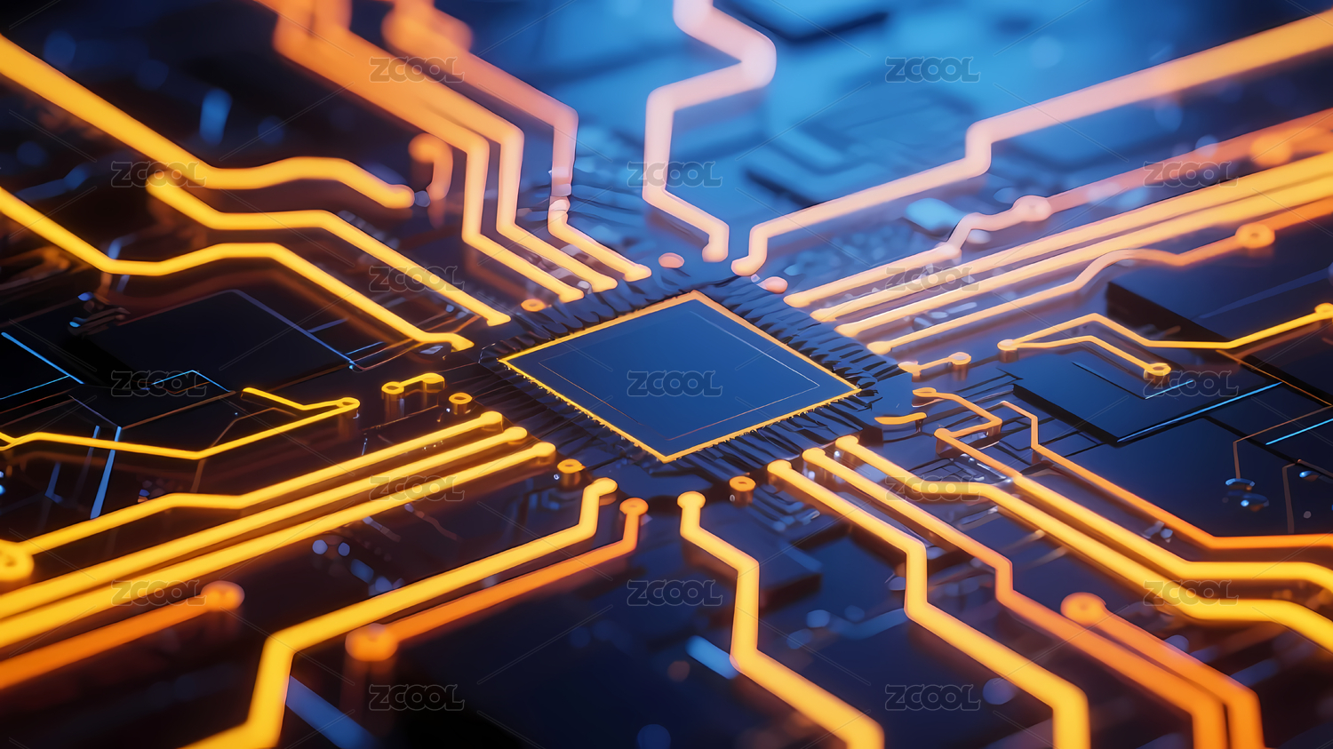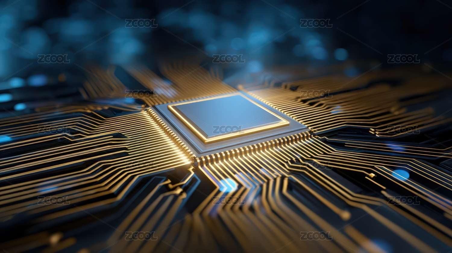 科技,画面,未来感,蓝色,微观,电子,金色,芯片,电路板,线路