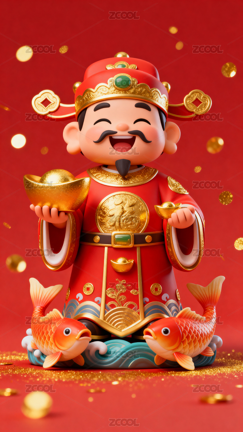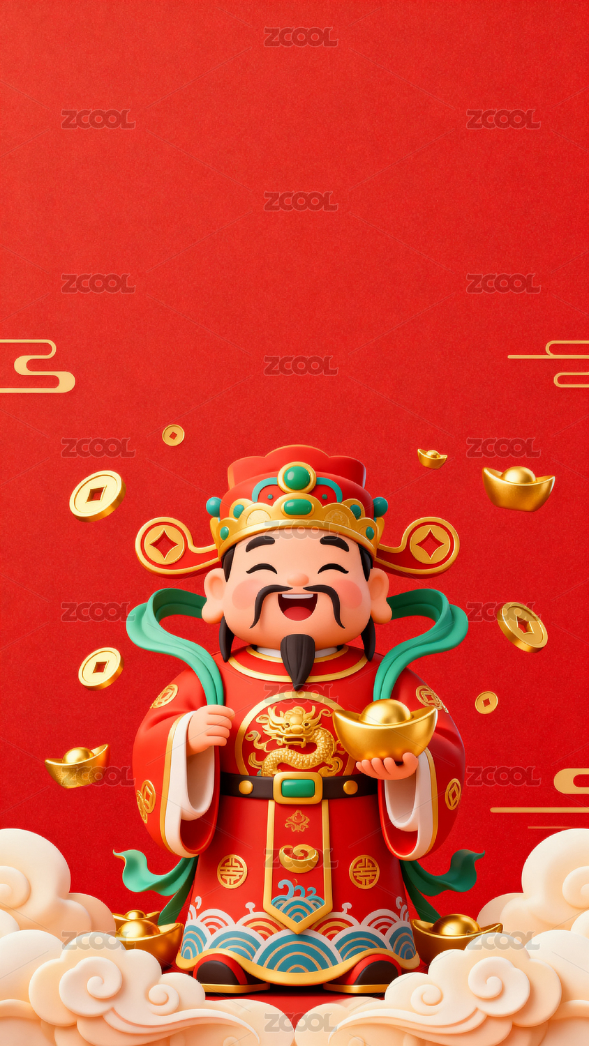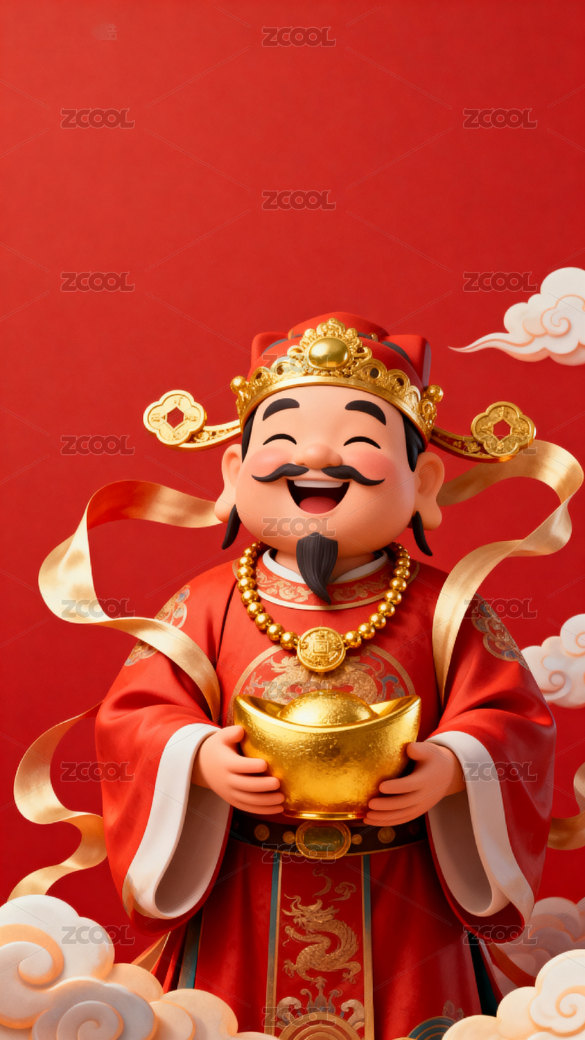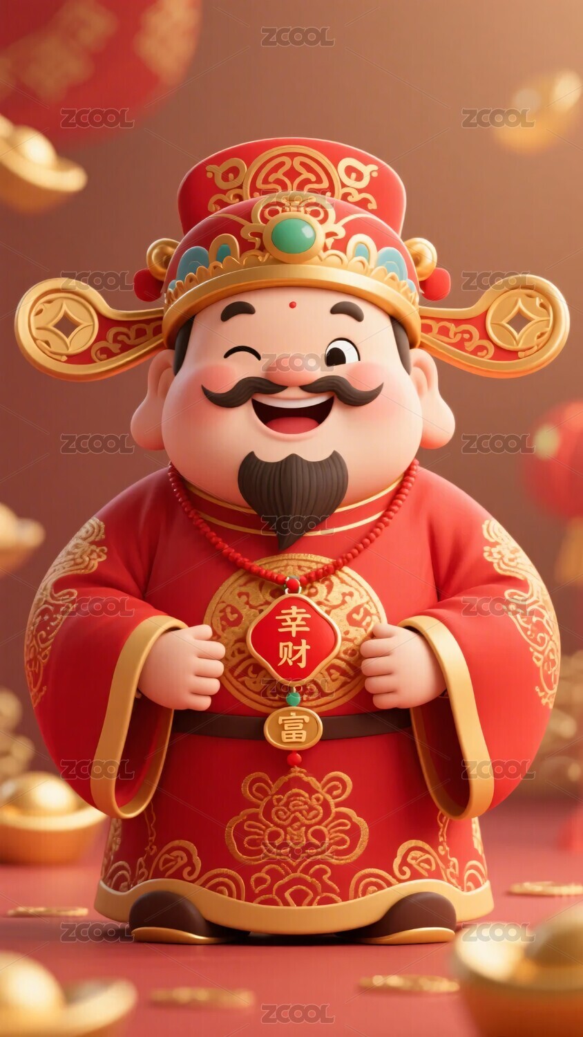 招财,红色,喜庆,元宝,金币,人物,财神爷,发财