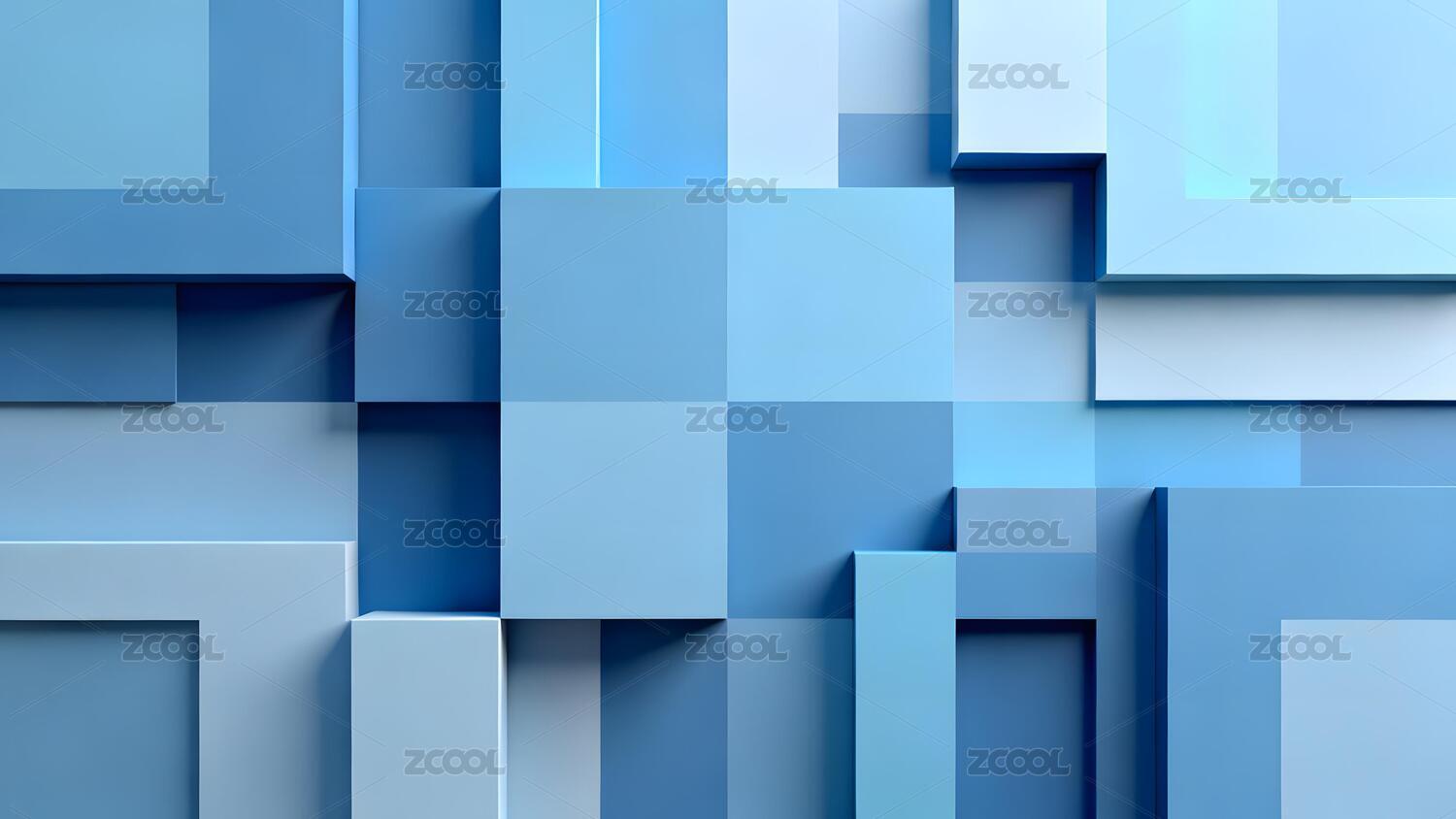 蓝色几何方块叠加渐变背景