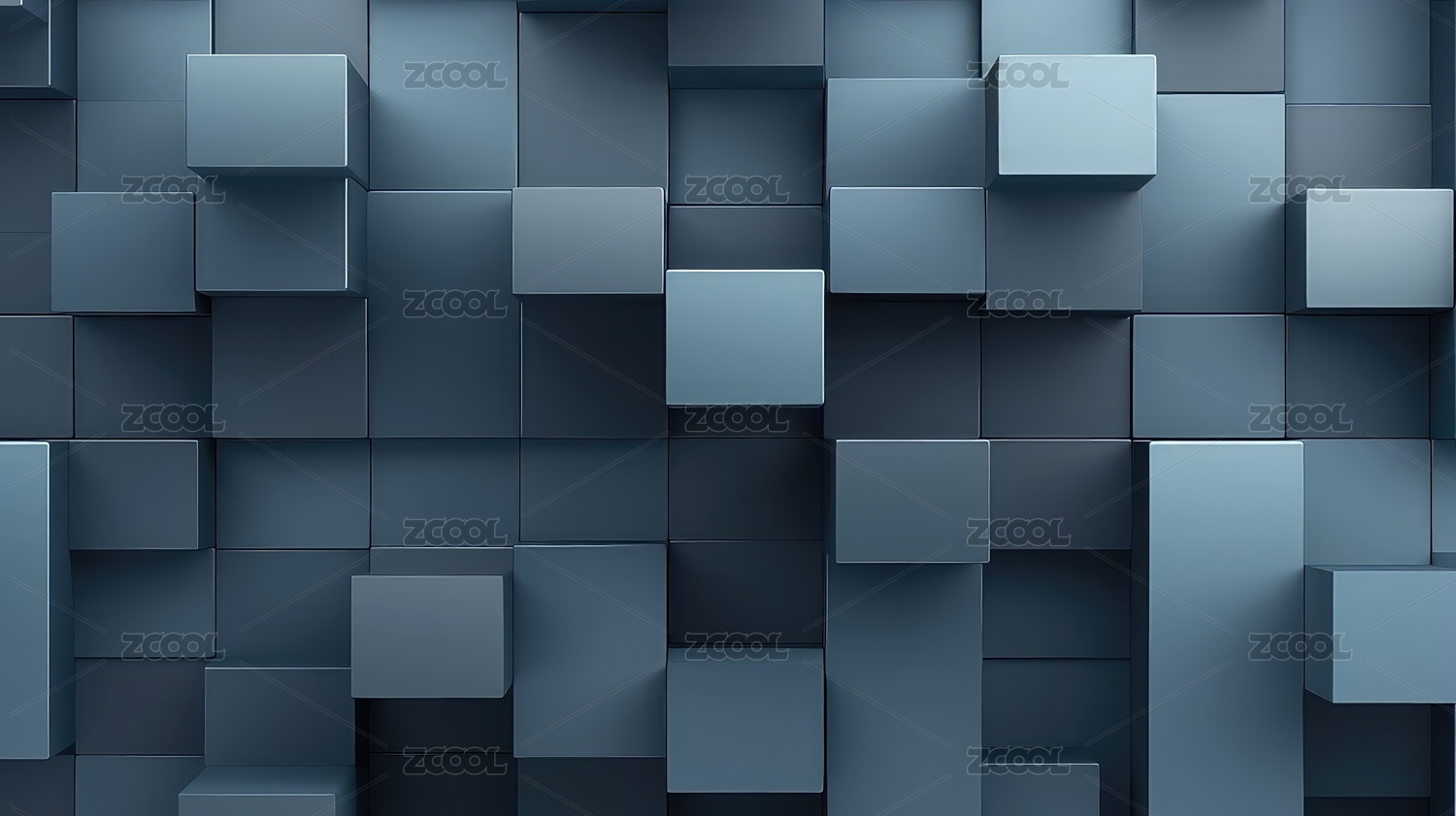 蓝灰色几何方块堆叠立体背景