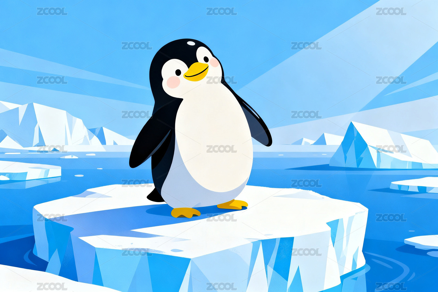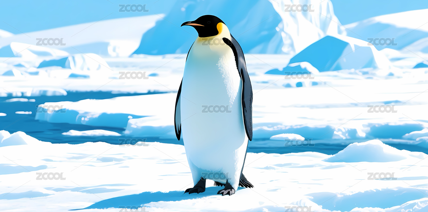 冰天雪地里的可爱企鹅宝宝卡通壁纸插画