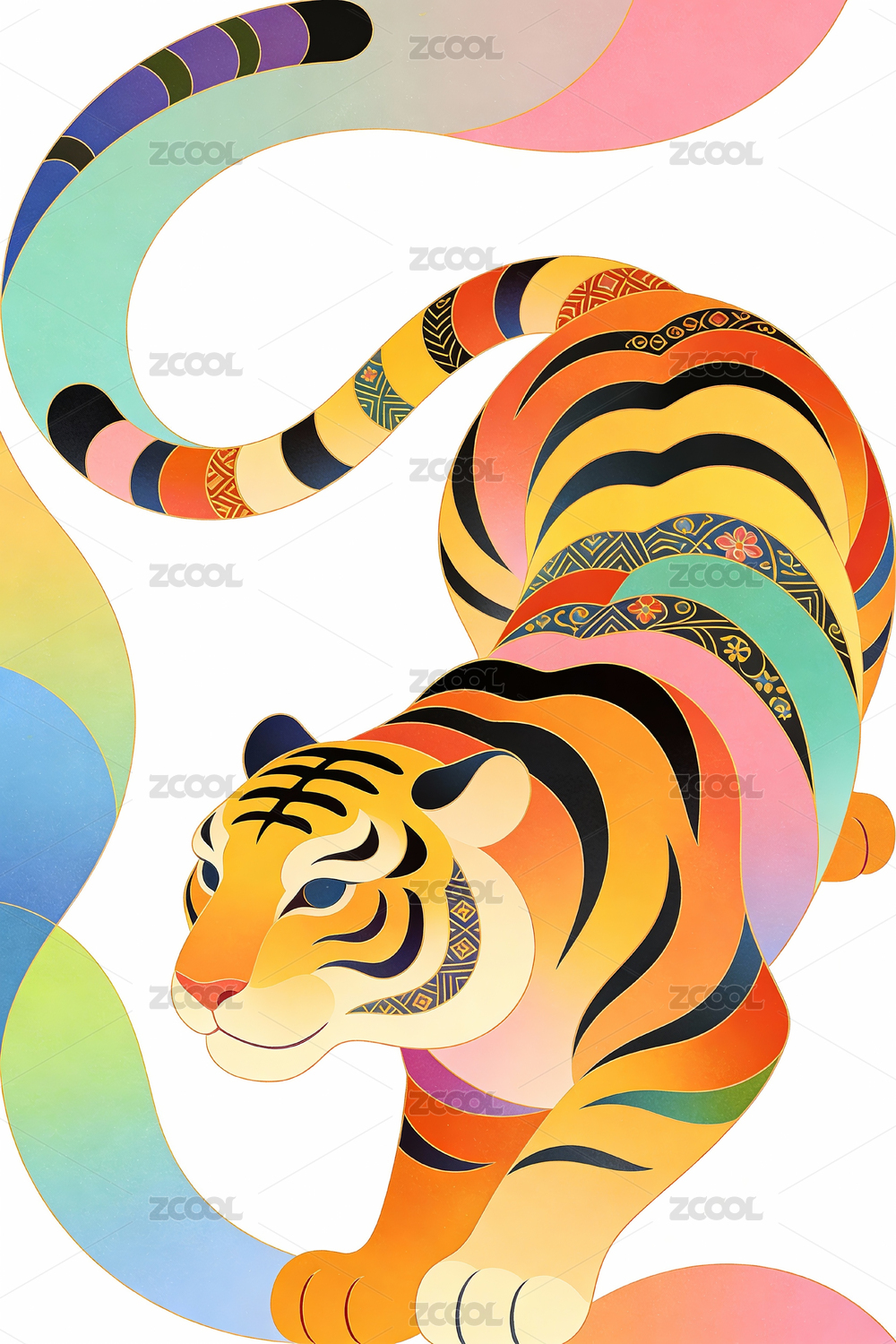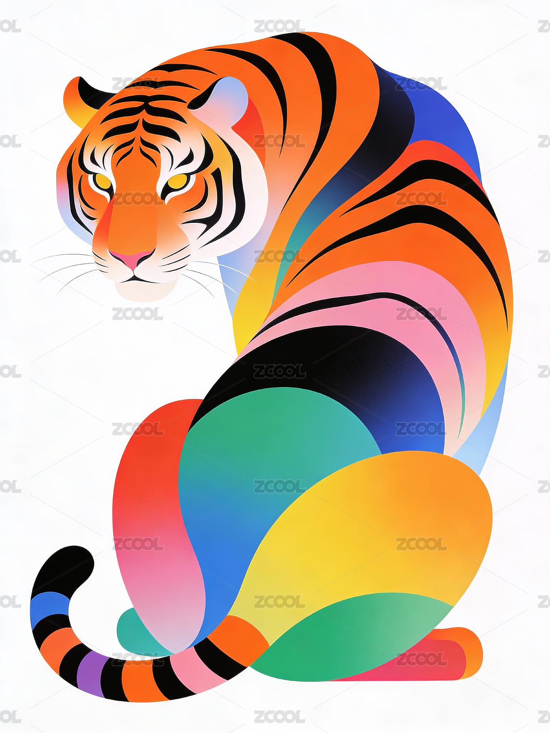 彩色渐变生肖虎插画