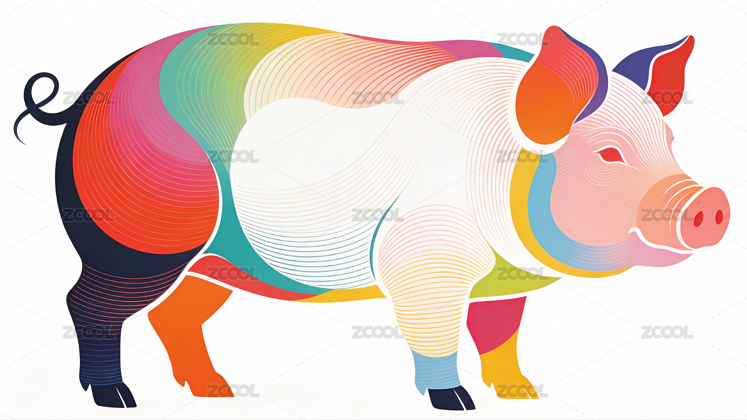 猪,生肖,猪年,插画,彩色,简约,线条,萌宠,卡通,渐变