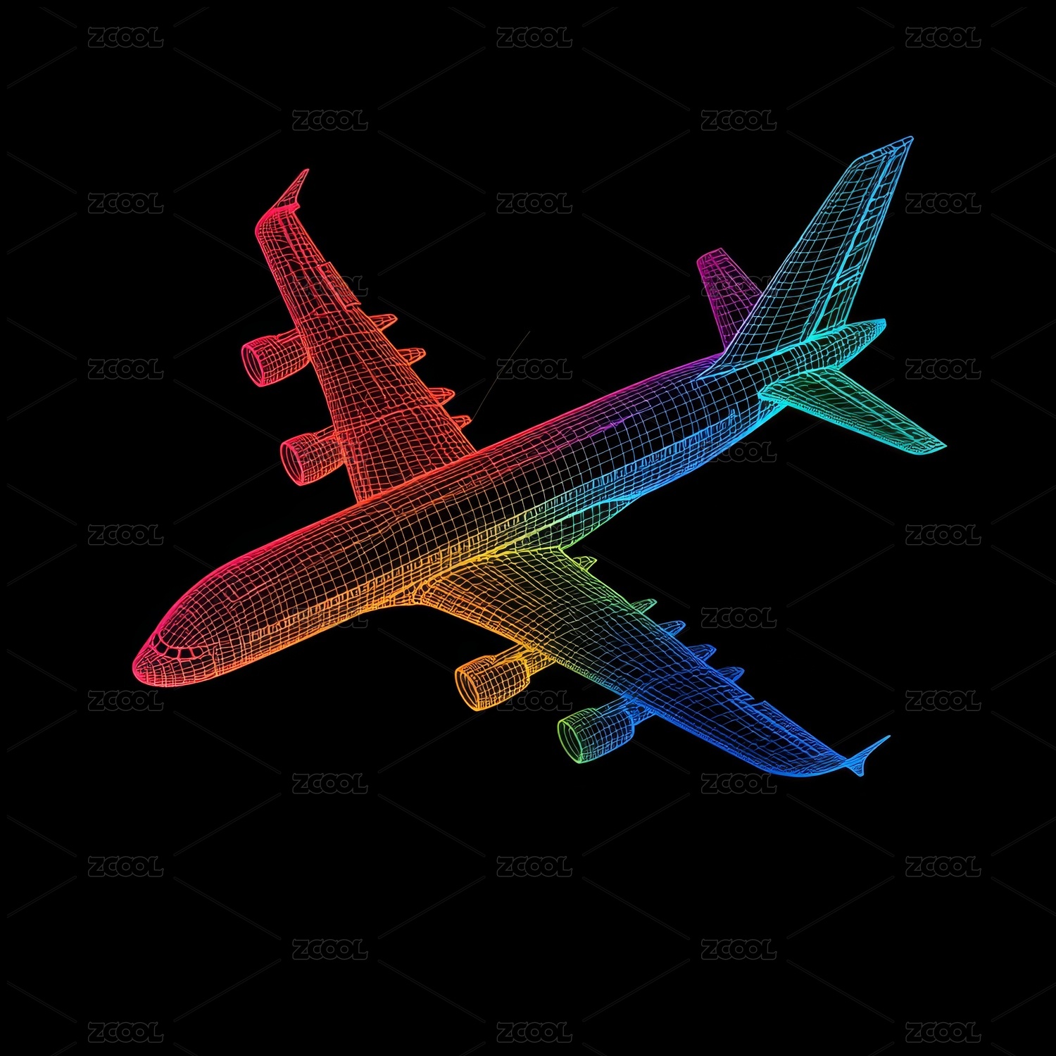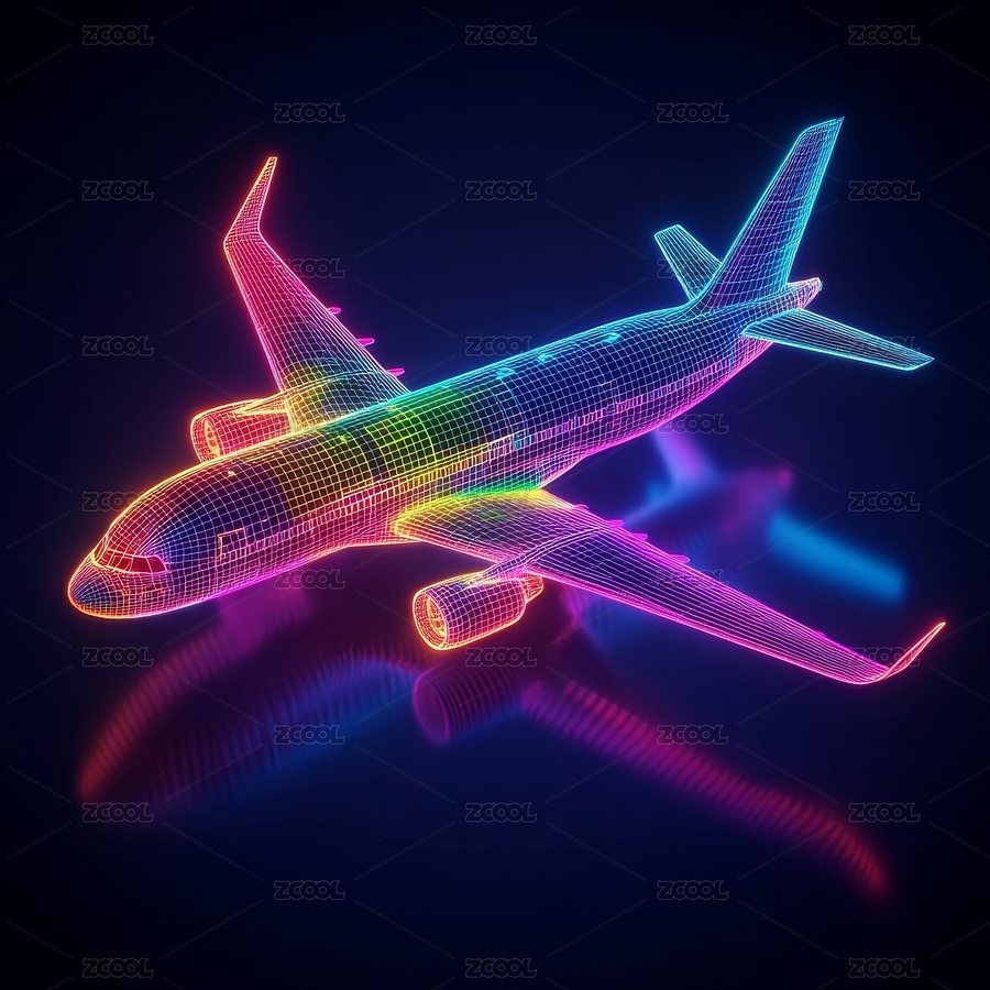 多彩线框飞机数字艺术图