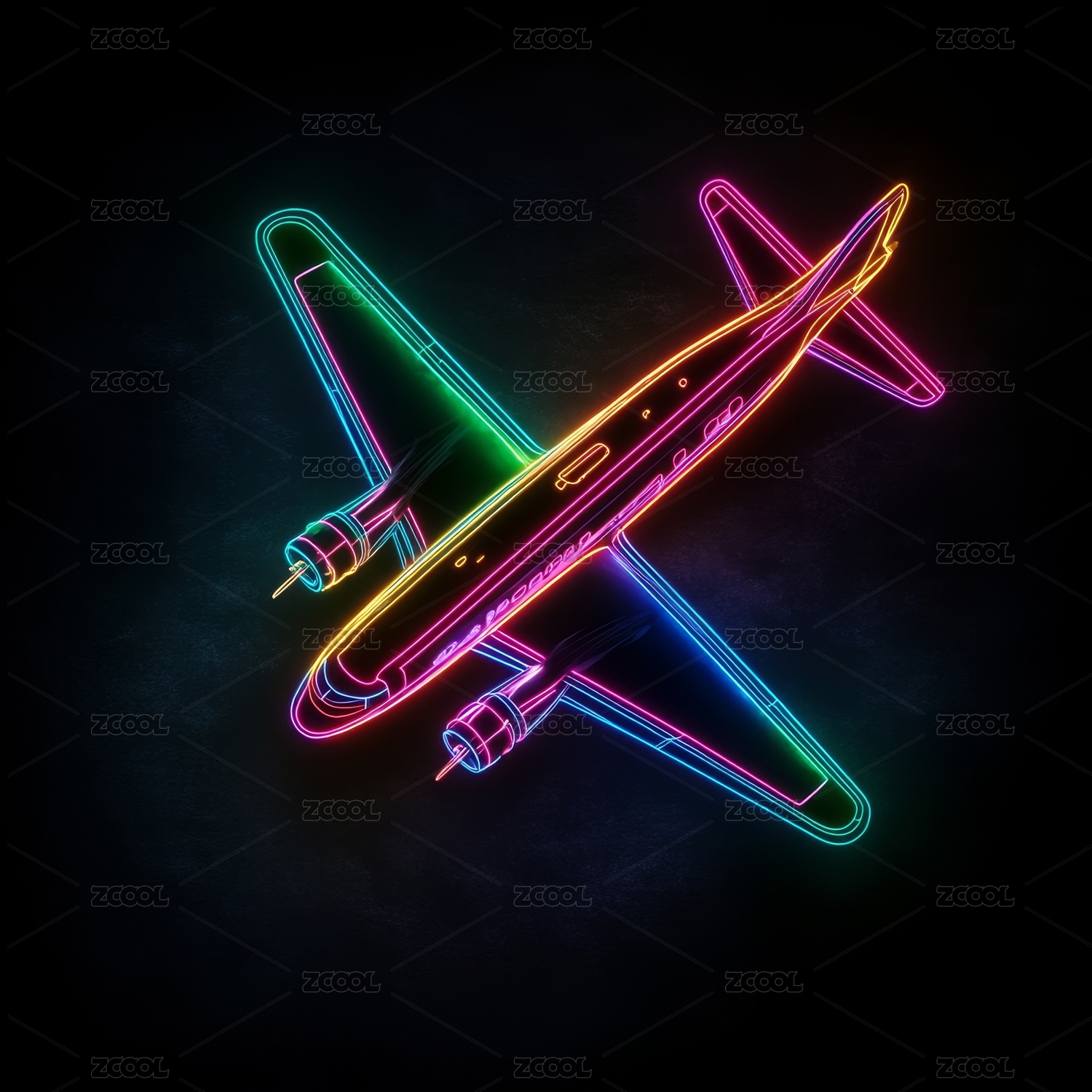 七彩霓虹飞机炫光图