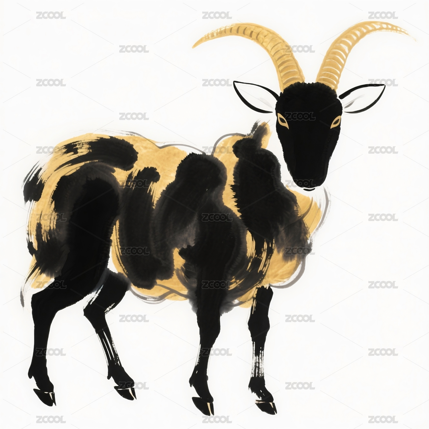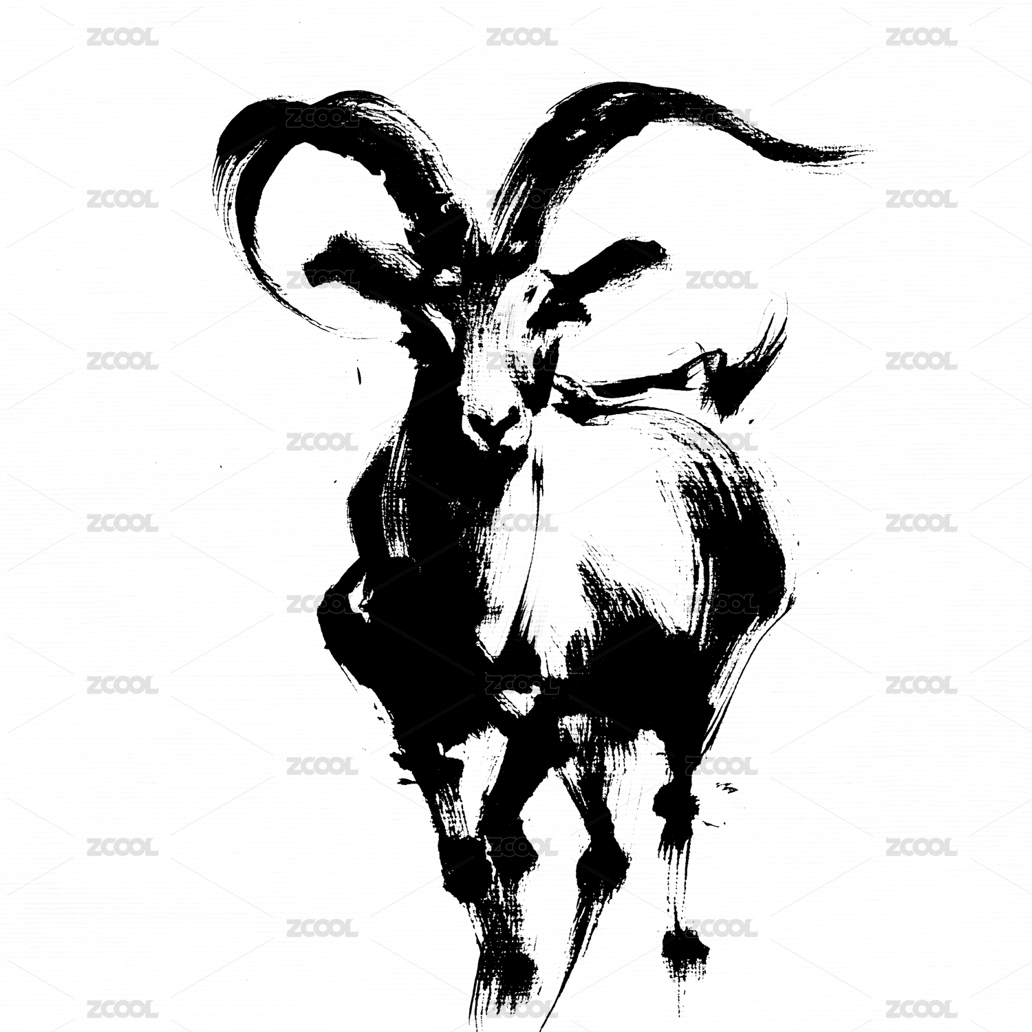 黑白,线条,山羊,简笔画,动物,素描,轮廓,简洁,绘画,基础