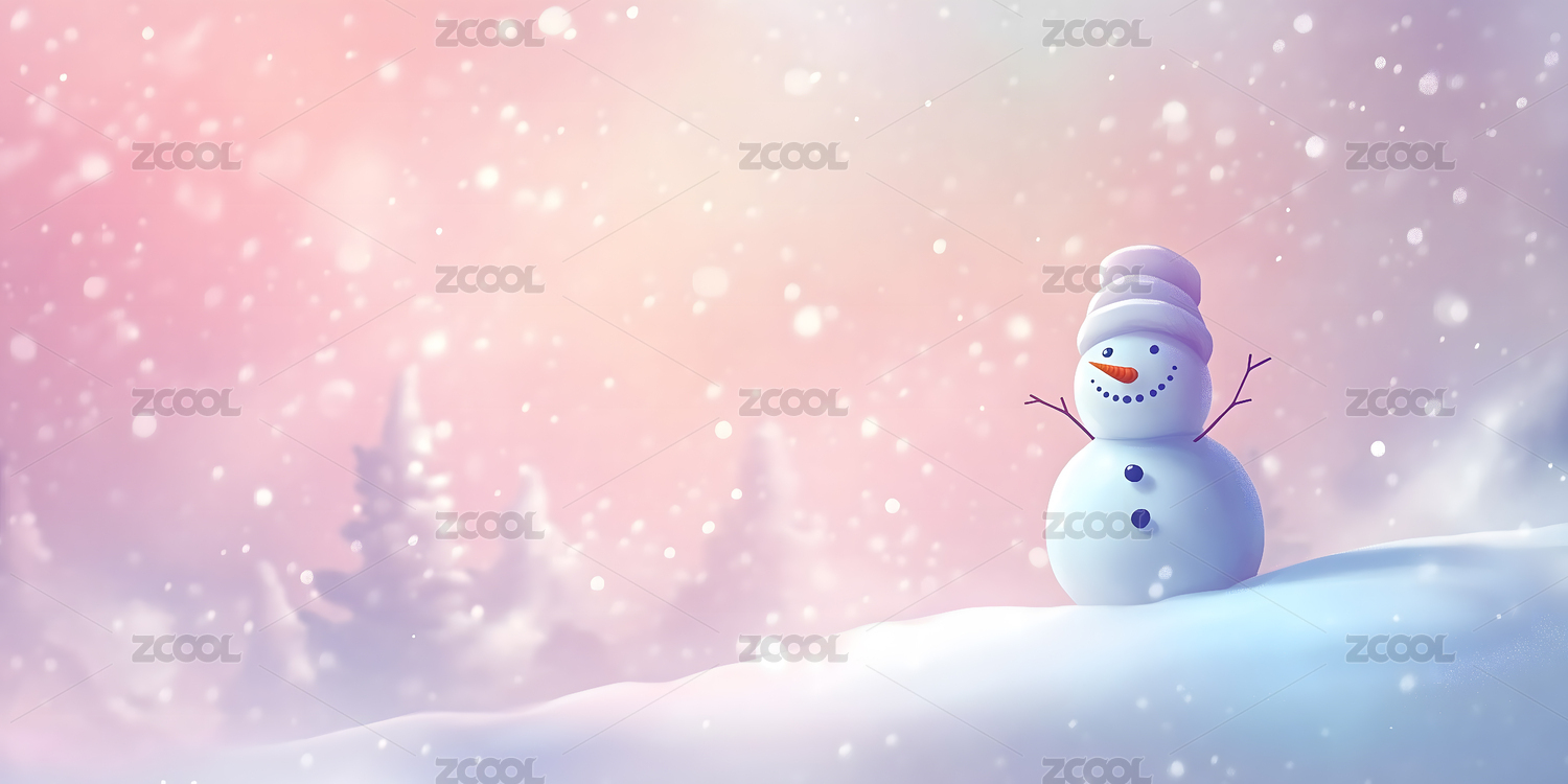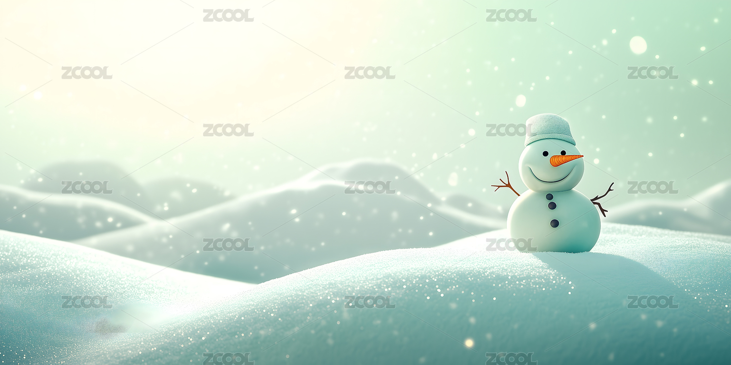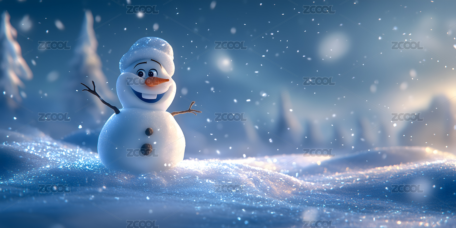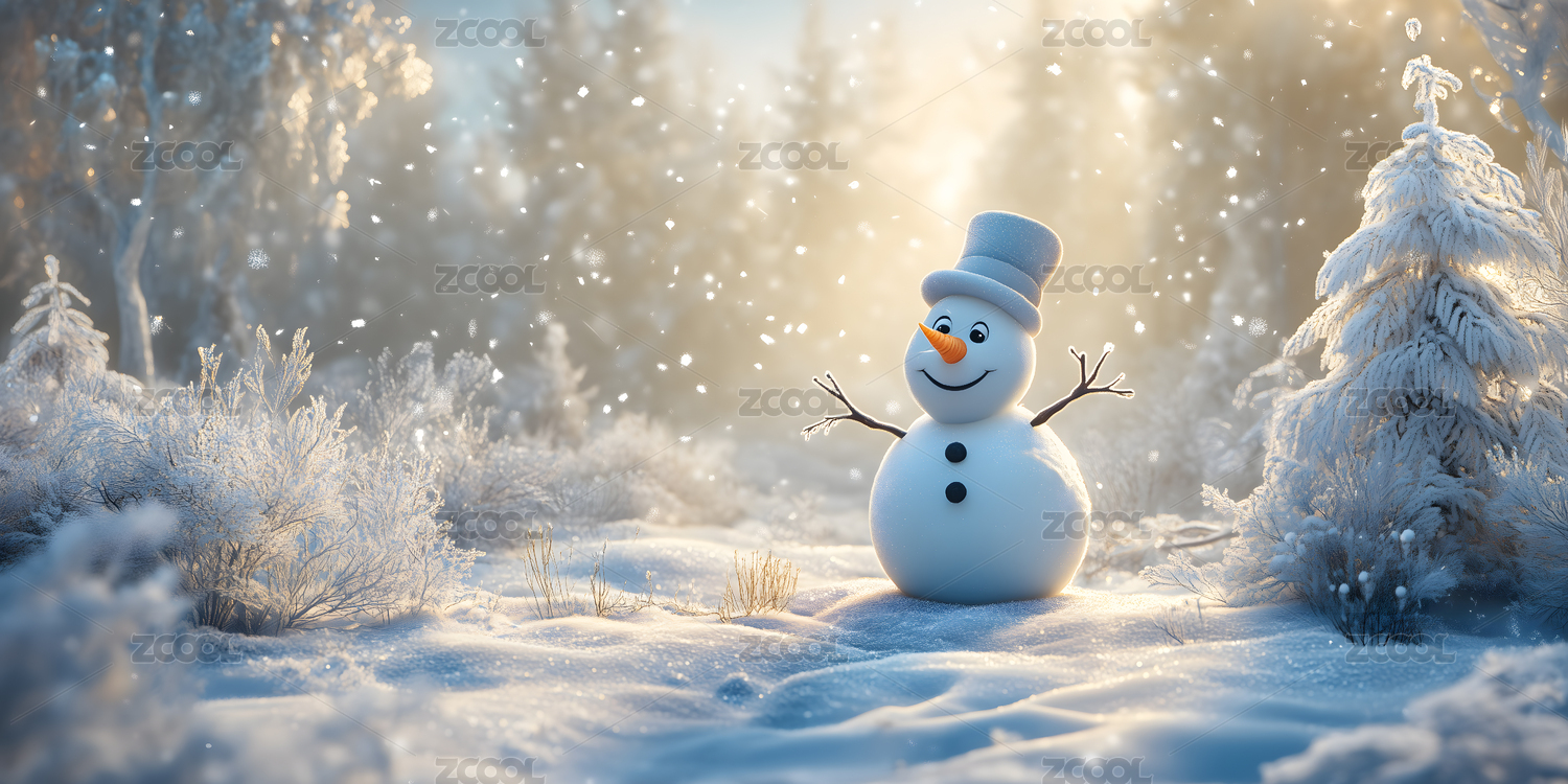 寒冷冬季阳光下的雪人3D立体卡通插画