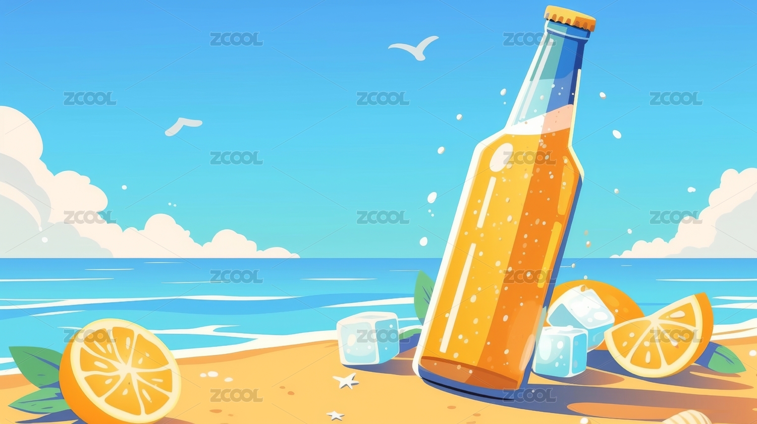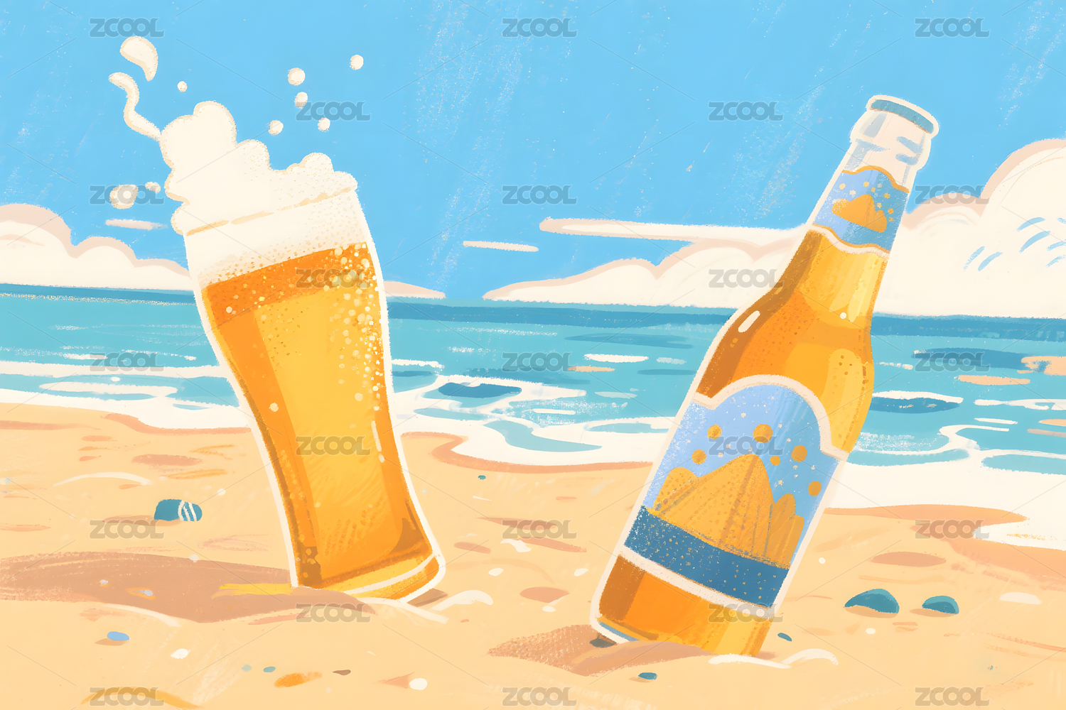夏日海滩冰啤酒