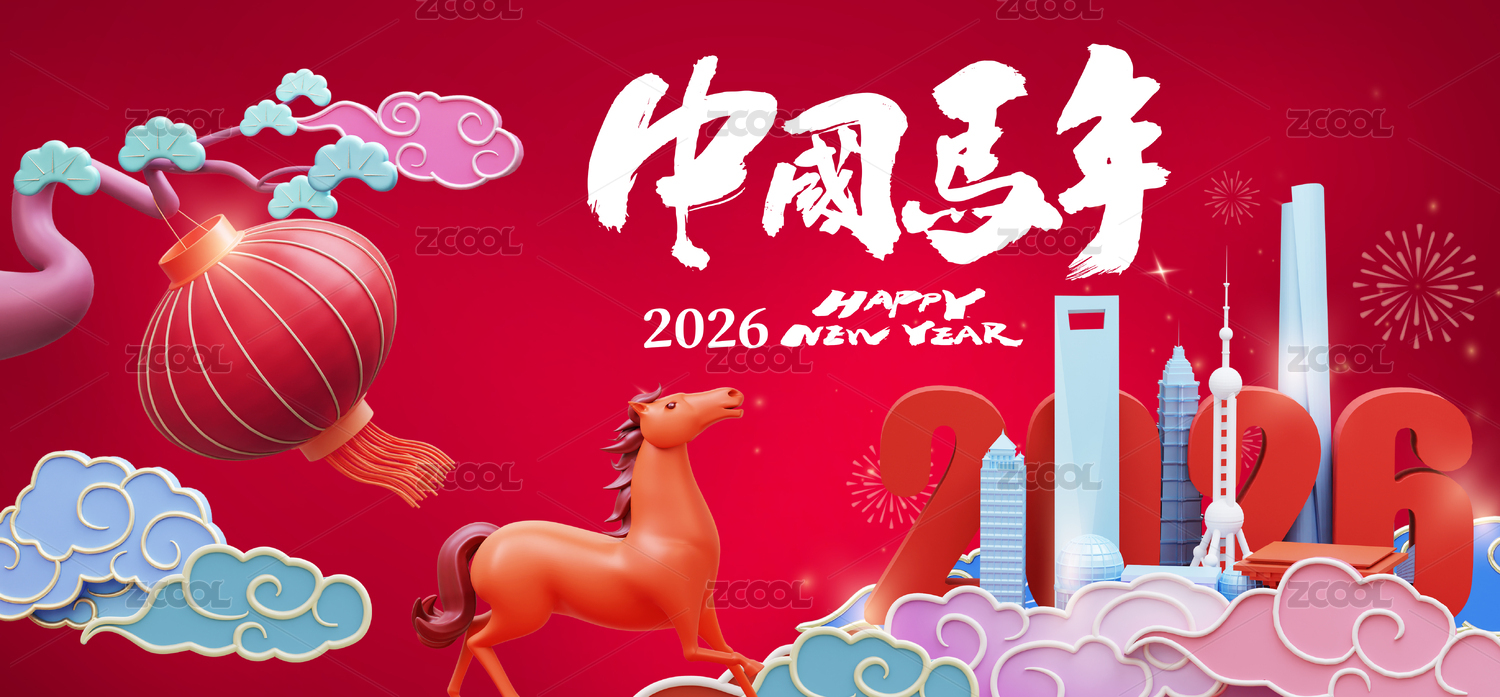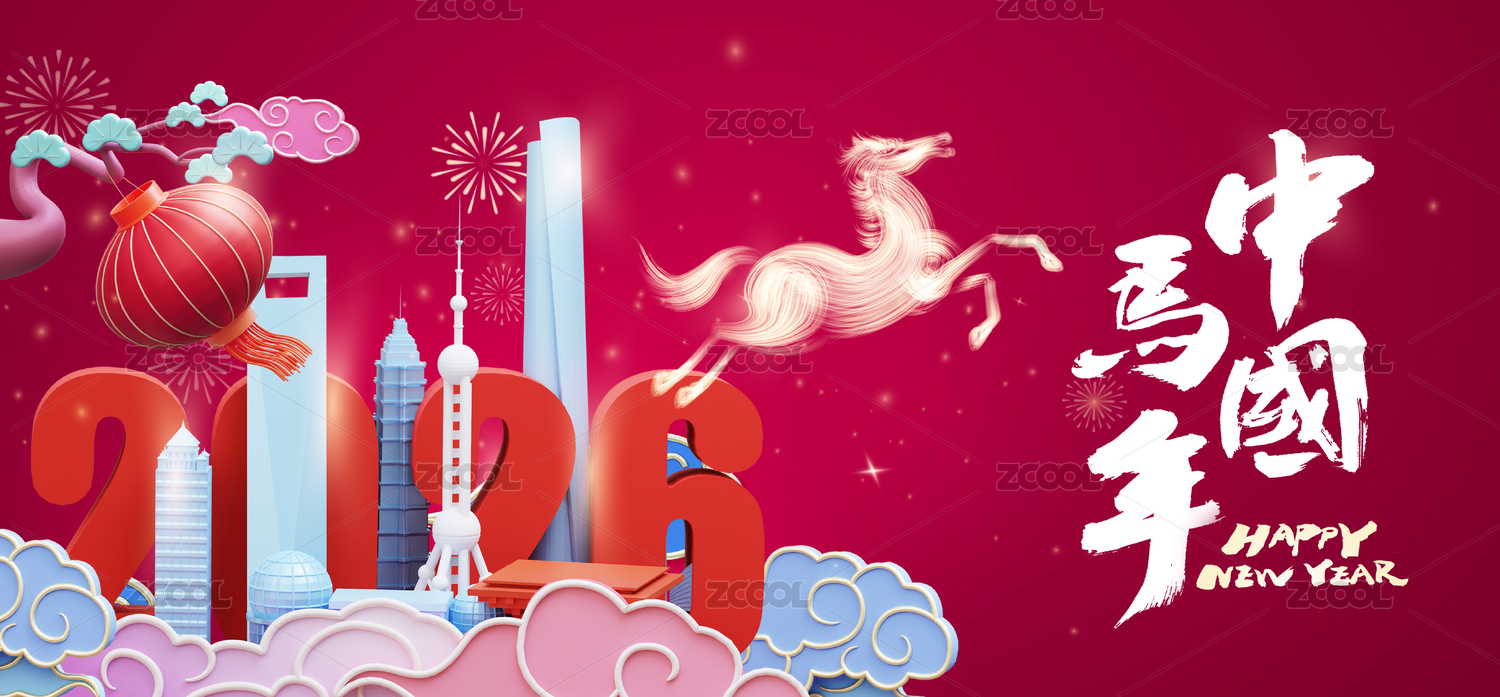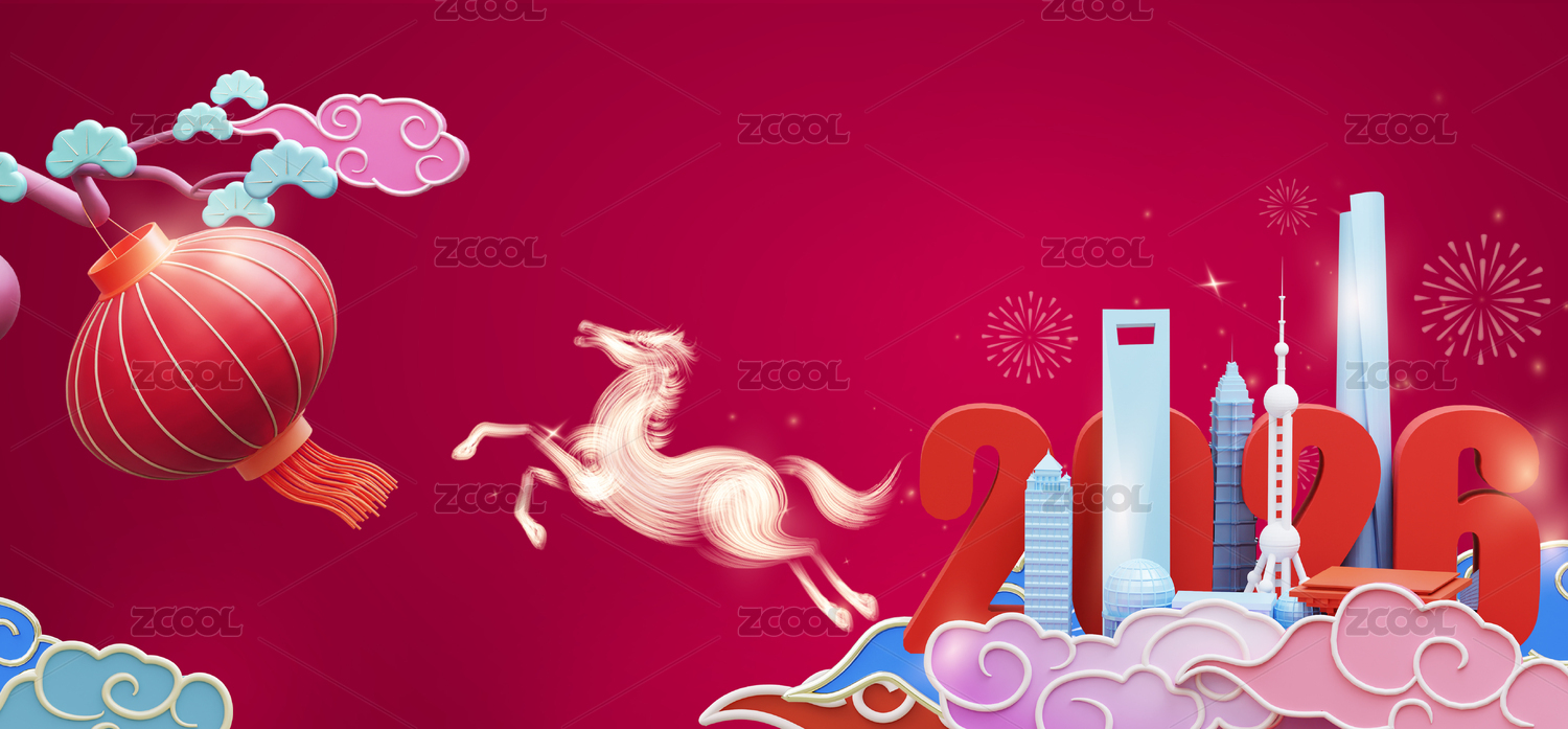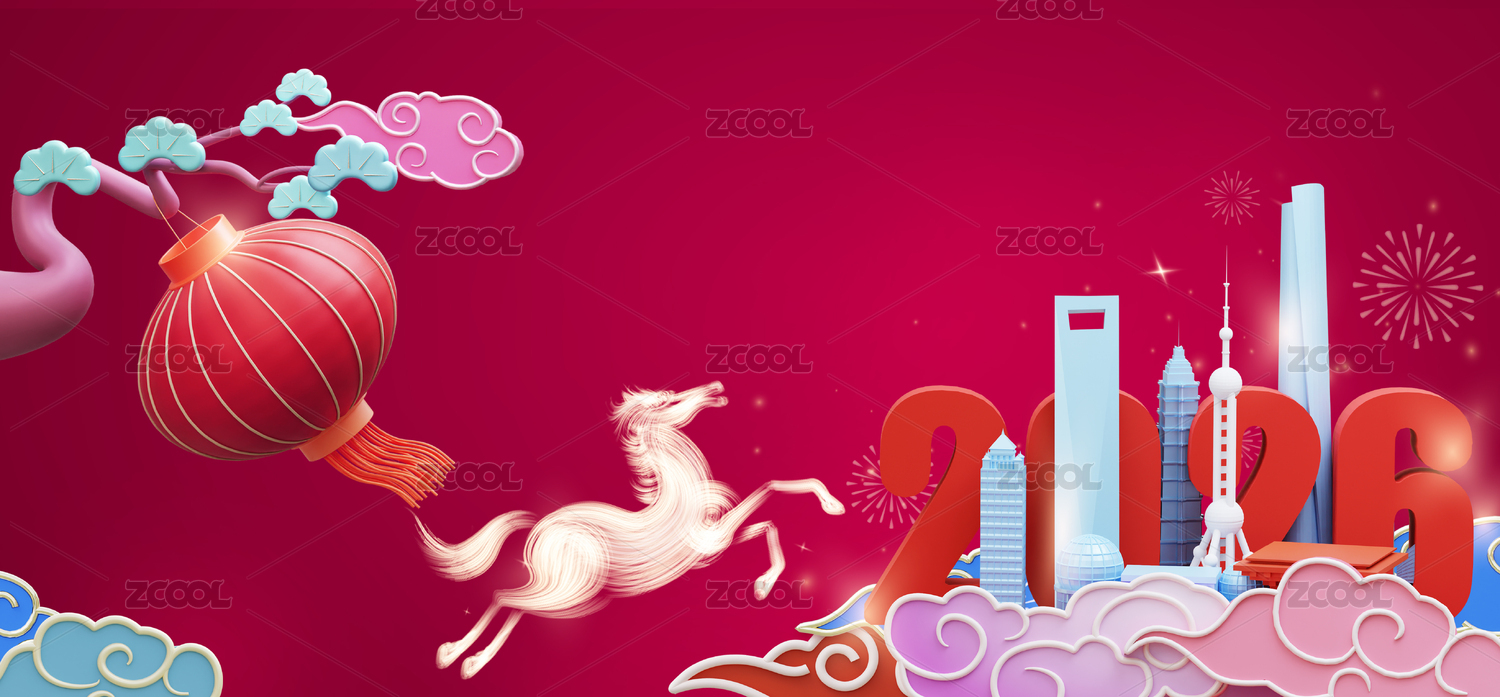 2026,马,马年,上海,中国,城市,地标,高楼,3D,奔跑