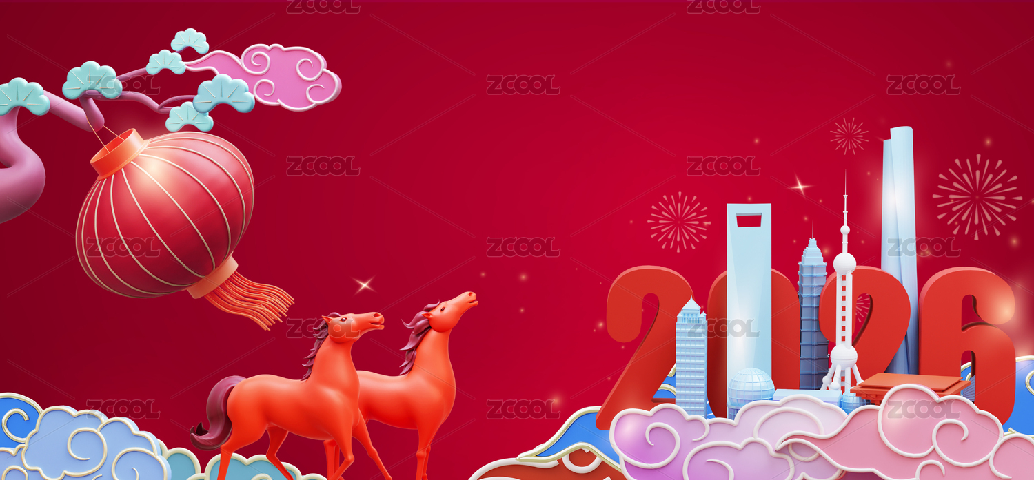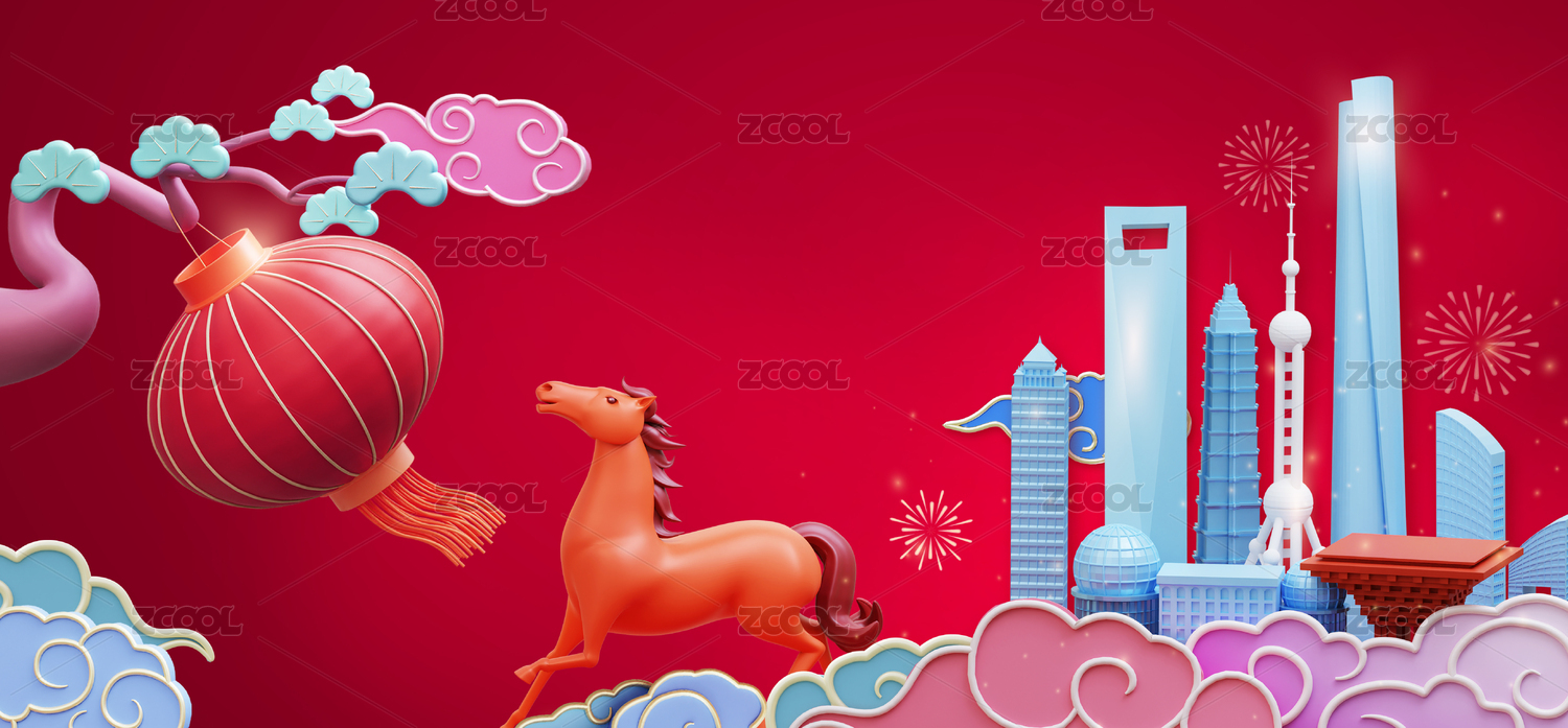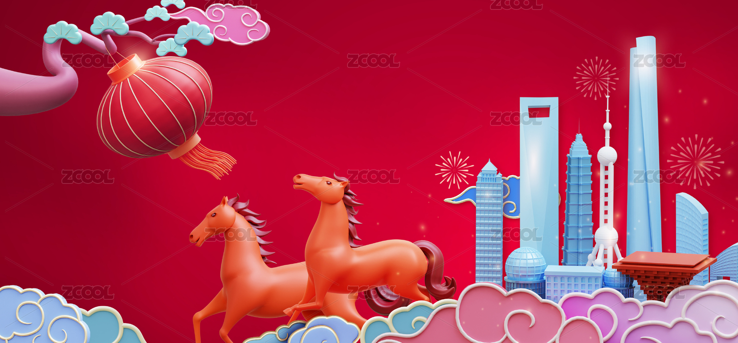 中国,马年,马年大吉,上海,城市,商务,发展,吉祥,祥云,灯笼