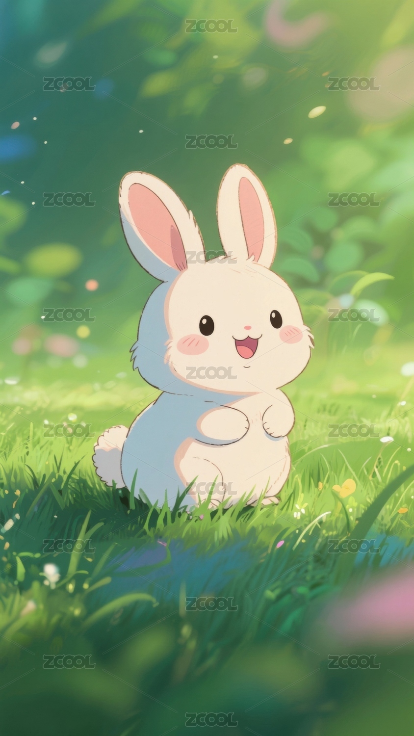 兔子可爱草地场景