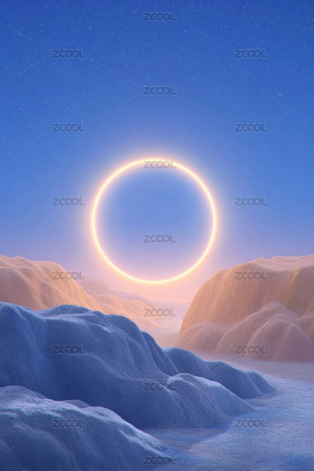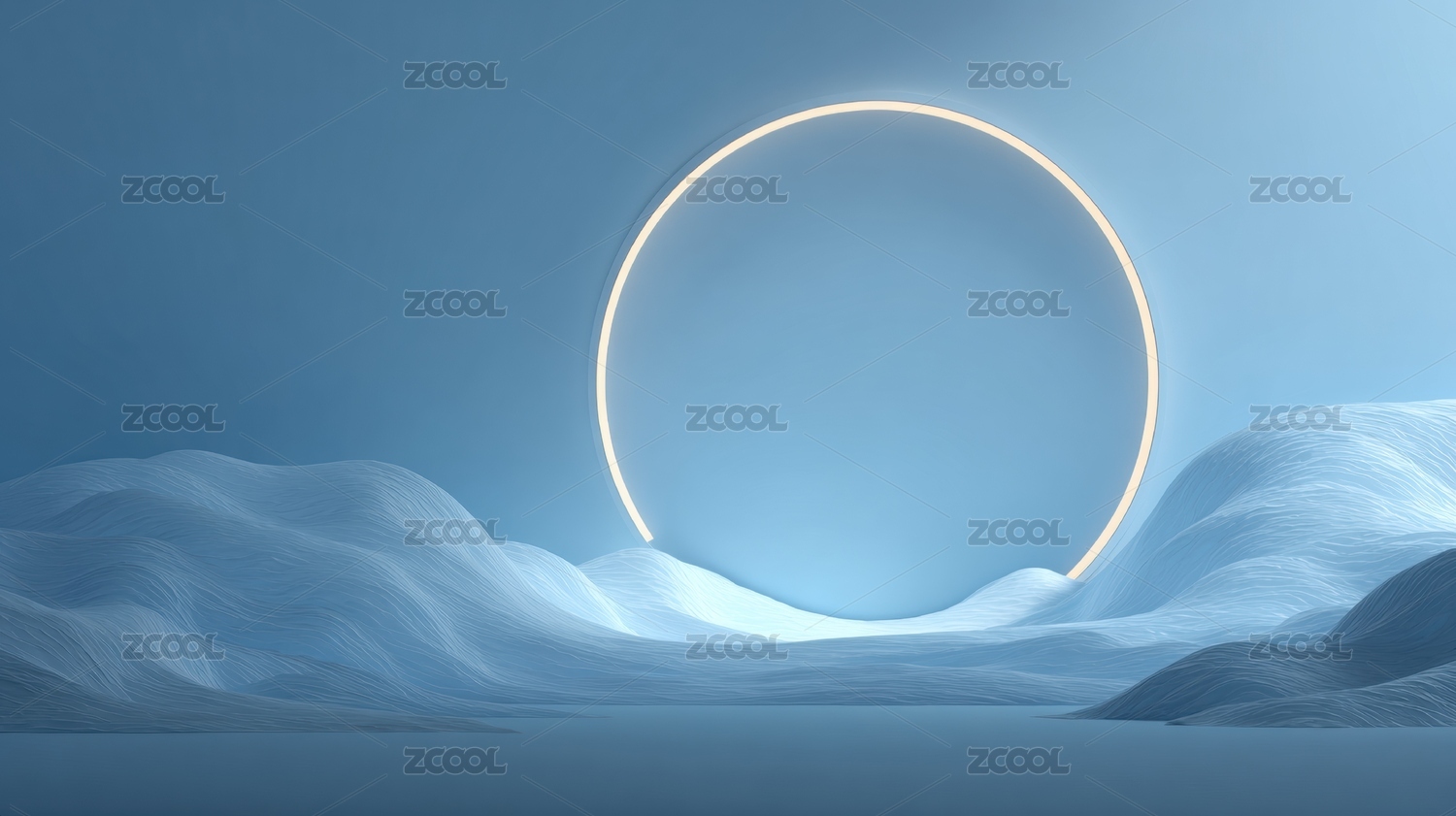 蓝色雪地中的发光圆环