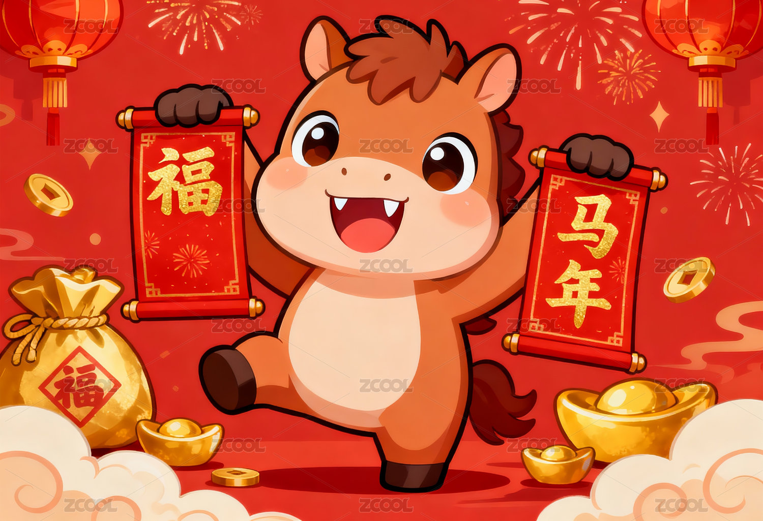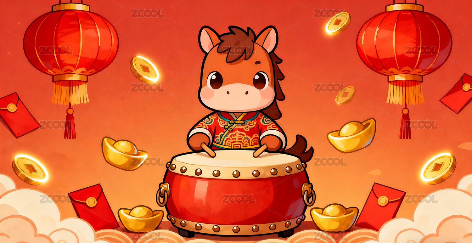 春节,生肖马,中国风,新年,插画,卡通,马年,红包,节日氛围,喜庆