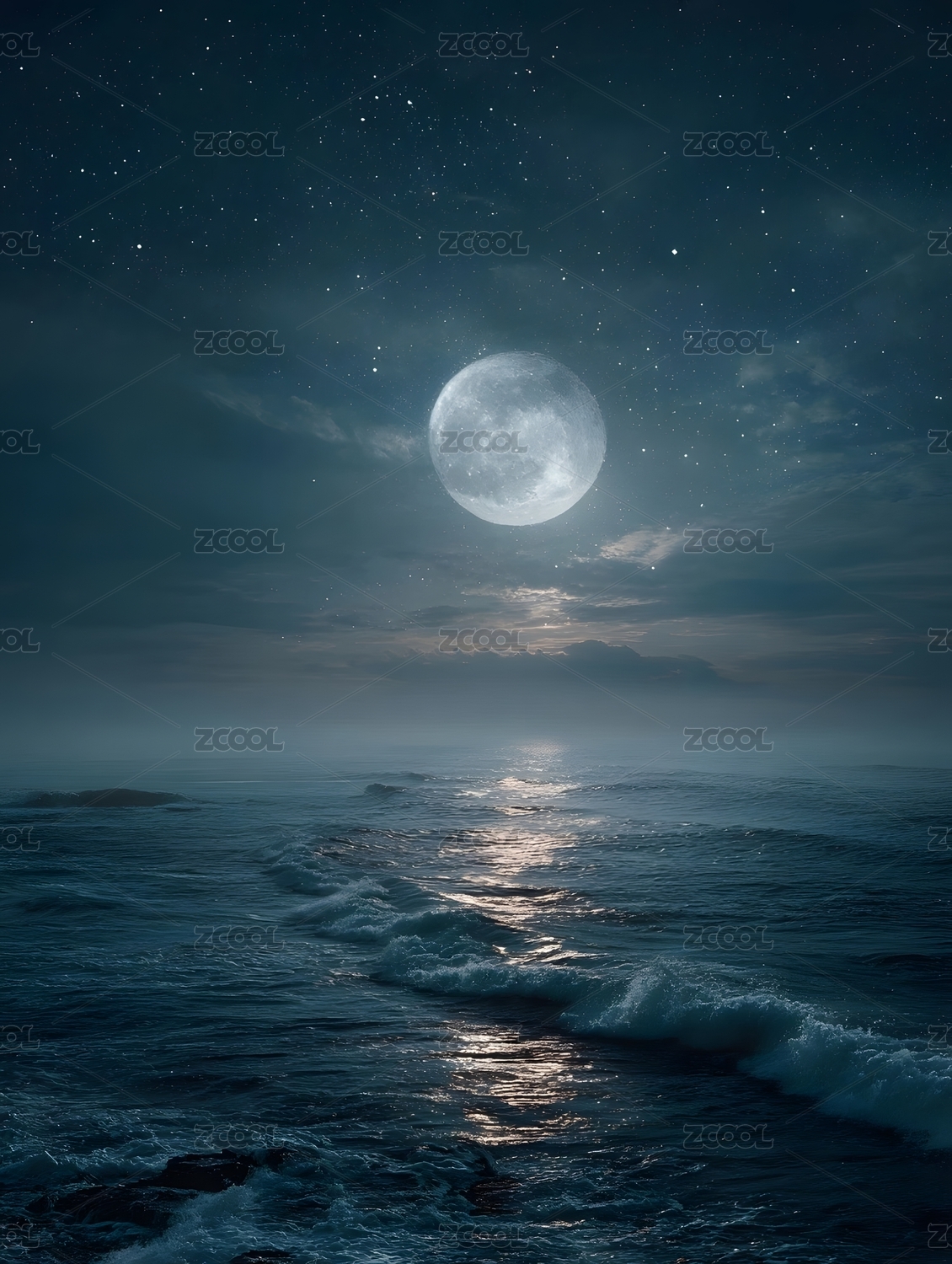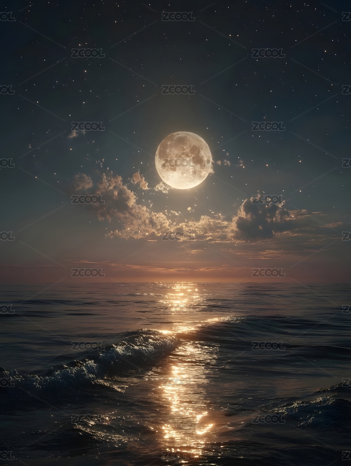 主视觉,商业,壁纸,月牙,金色,海景,夜空,装饰,星辰,海浪