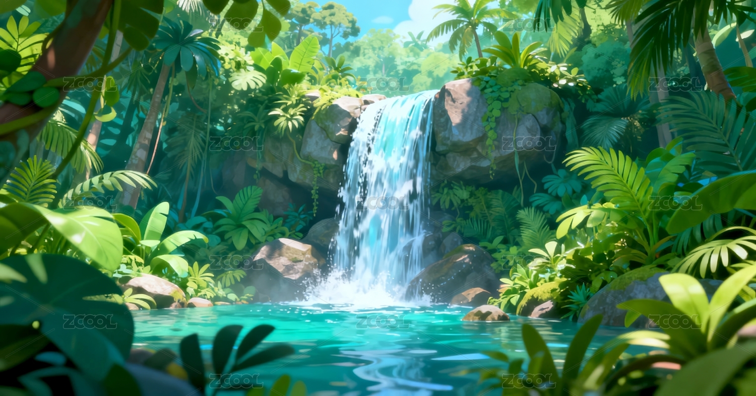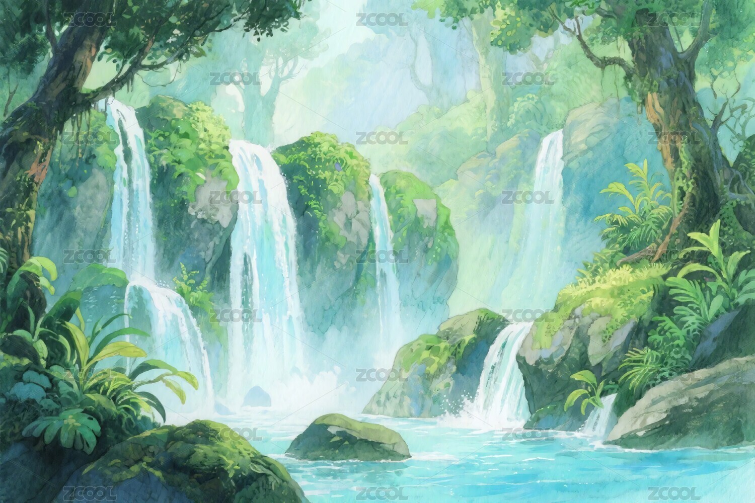 主视觉,商业,壁纸,雨林,瀑布,梦幻,自然,地貌,装饰,背景