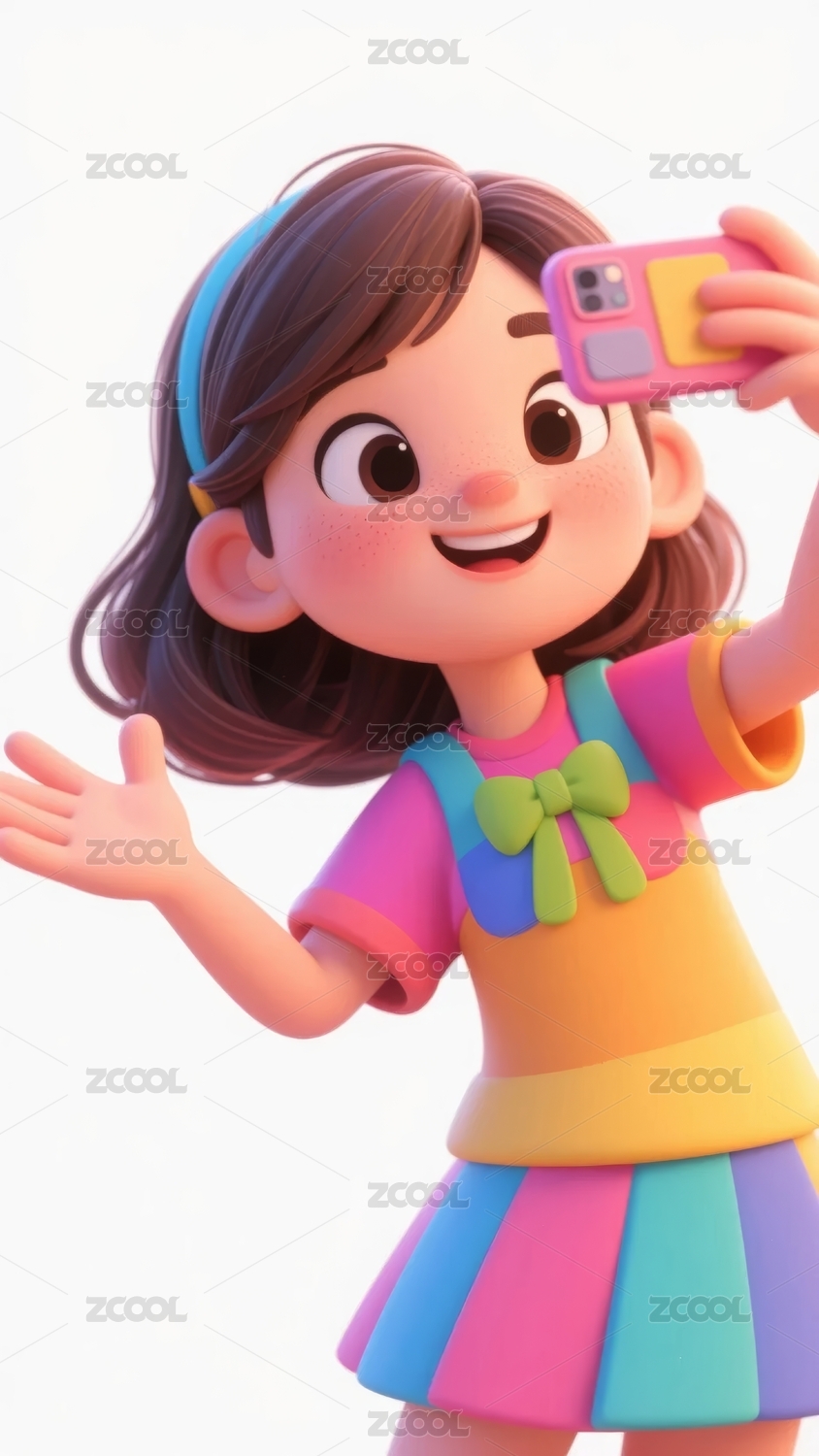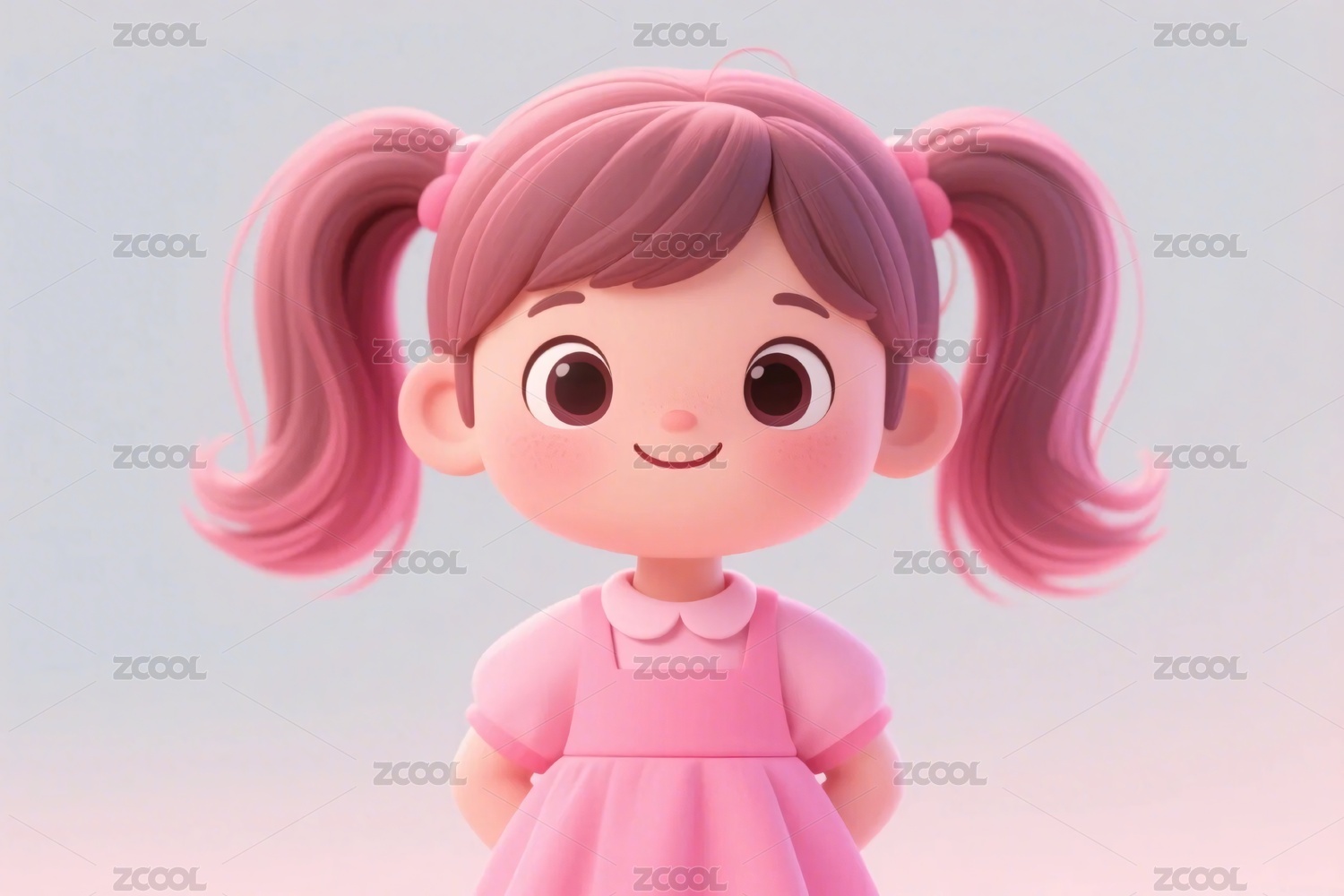 卡通女孩,相框,女孩,花朵,春季,清新,插画,蓝色背景,C4D,3D