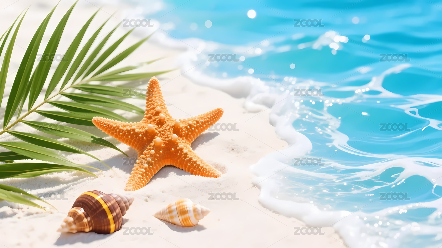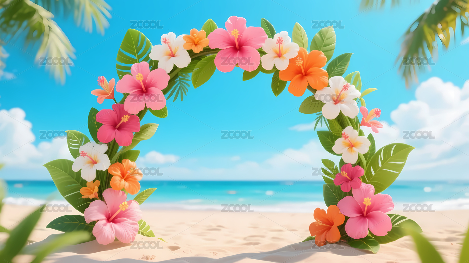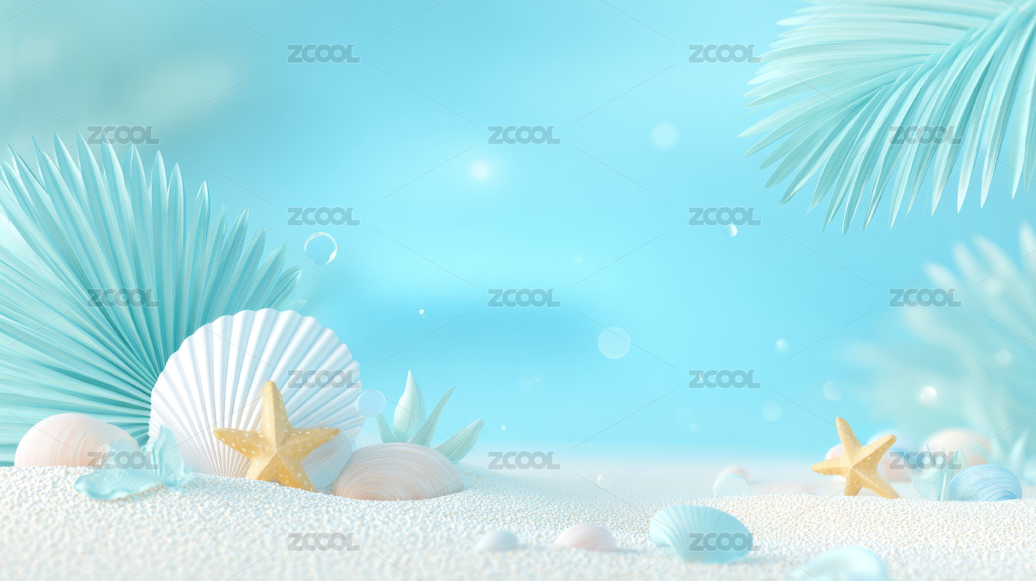 3D渲染夏日热带沙滩海洋风格产品展台背景