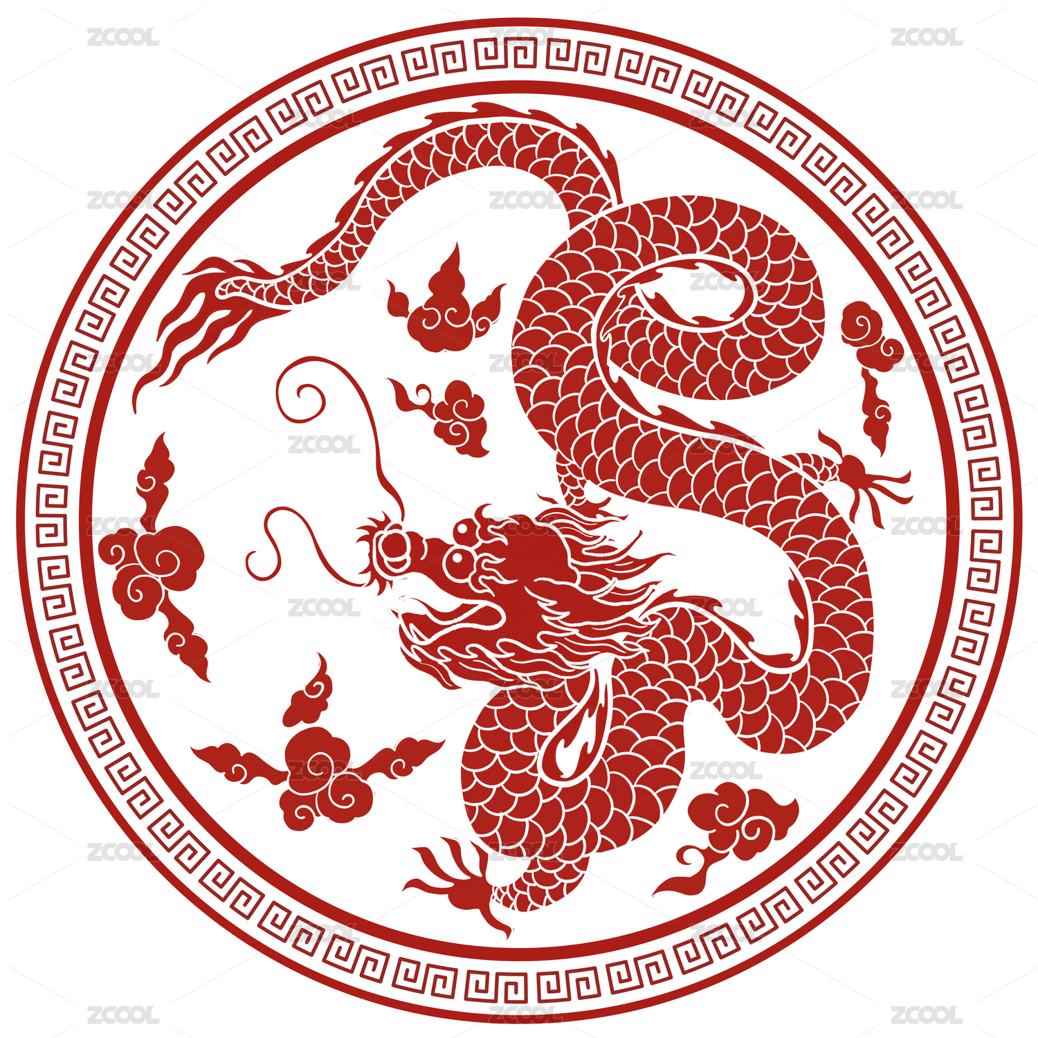 矢量十二生肖团龙祥云传统纹样