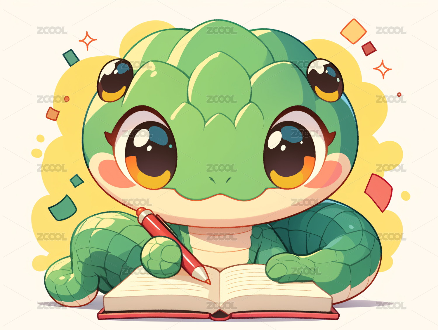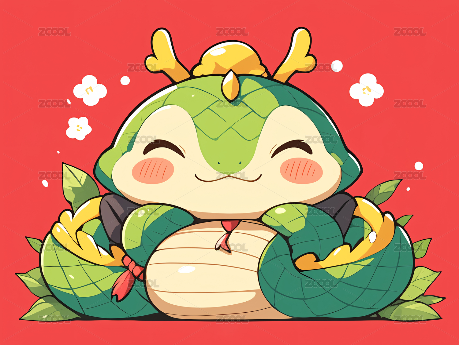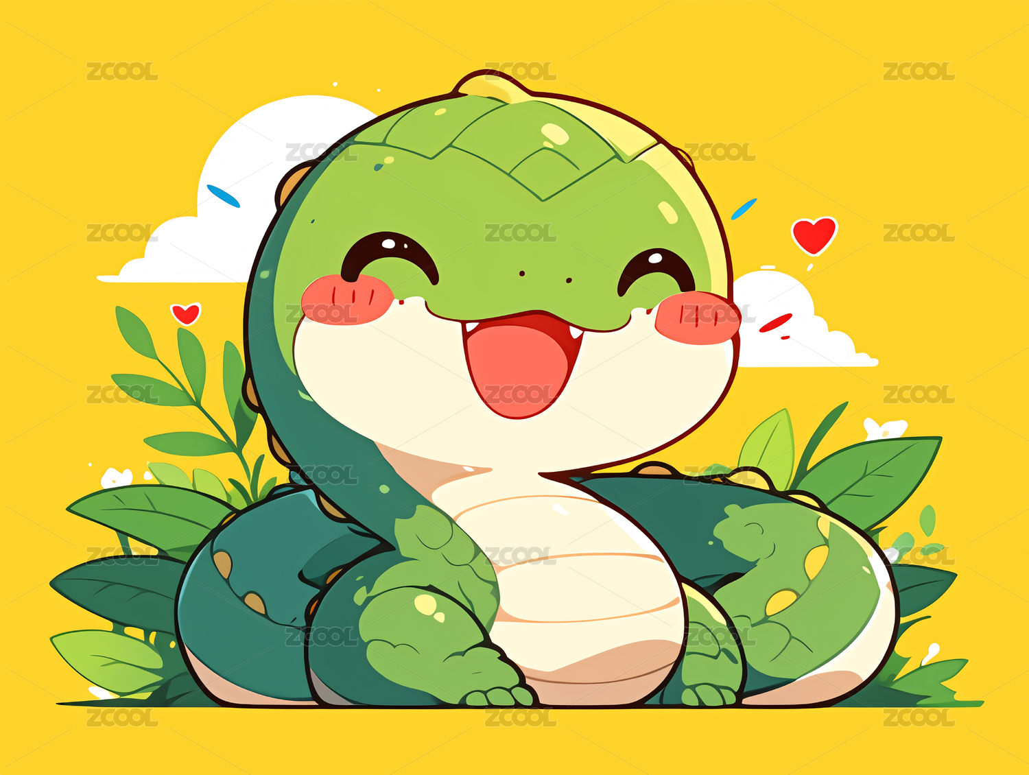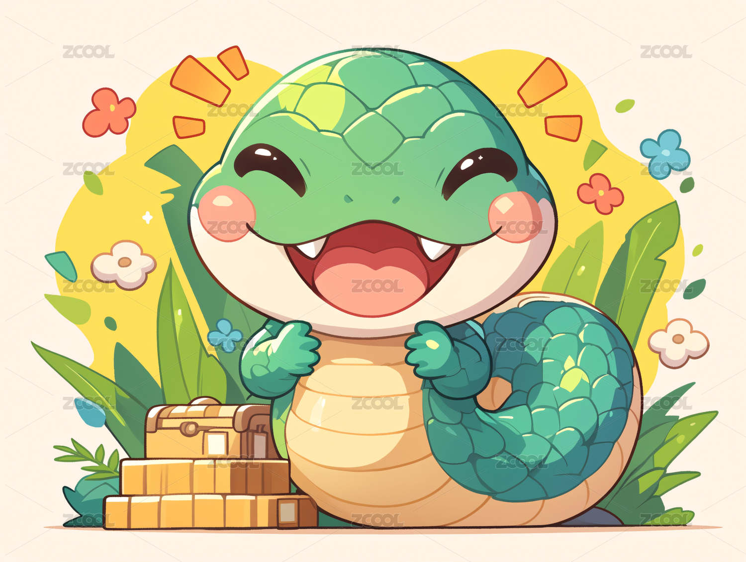 蛇年五行蛇插图,此张为五行木《灵蛇献瑞》