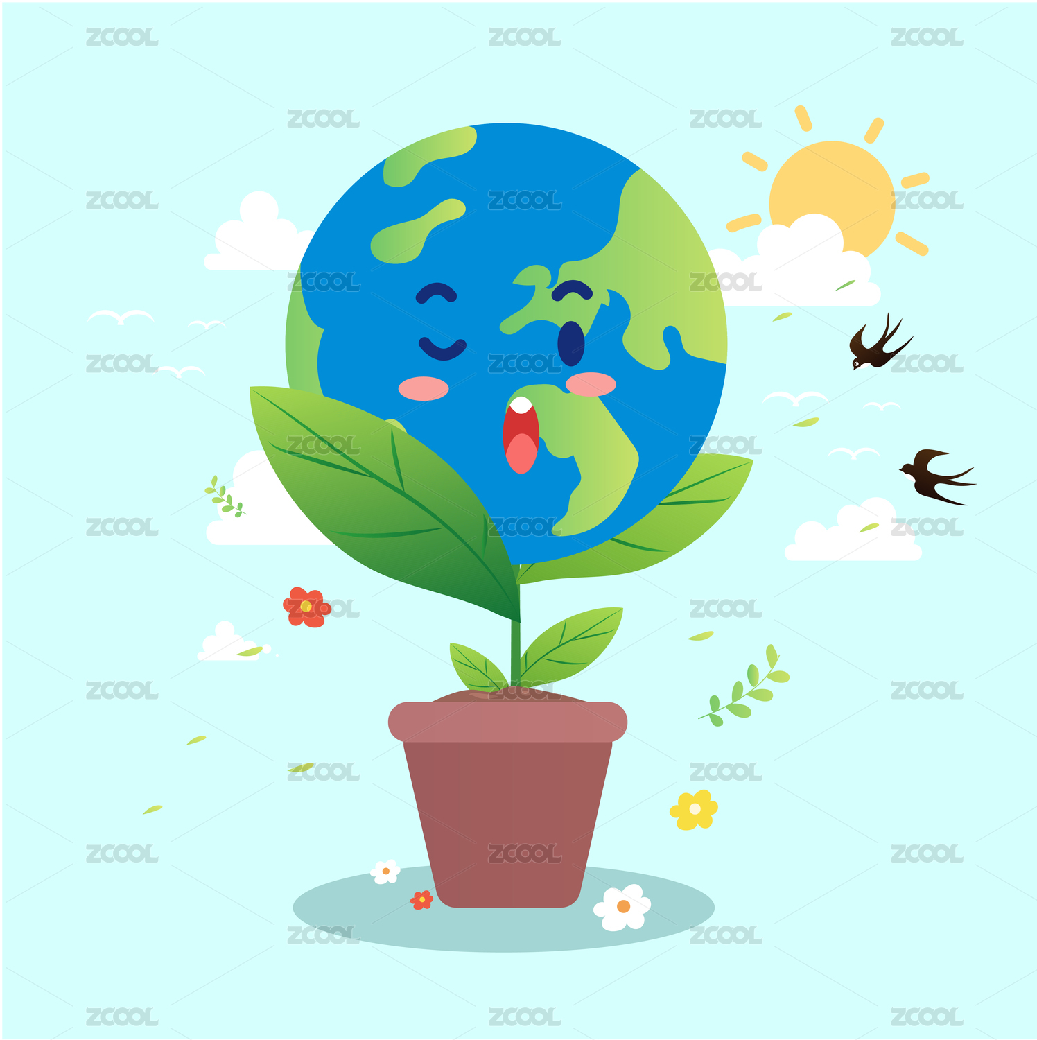 可爱地球日常概念插画