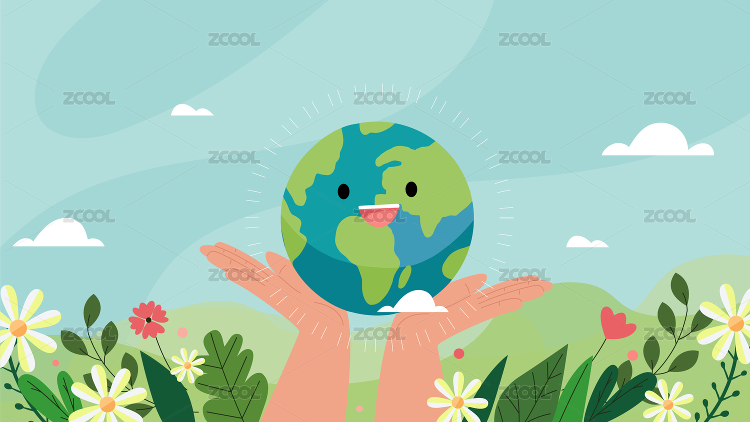一双手捧着地球的矢量插画