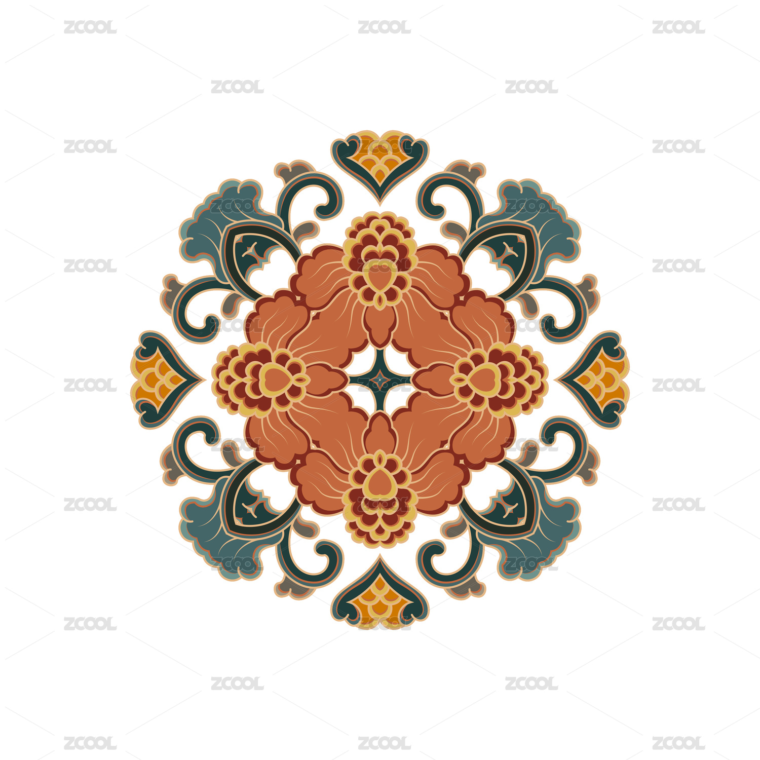 传统团花中国风花纹纹样图案
