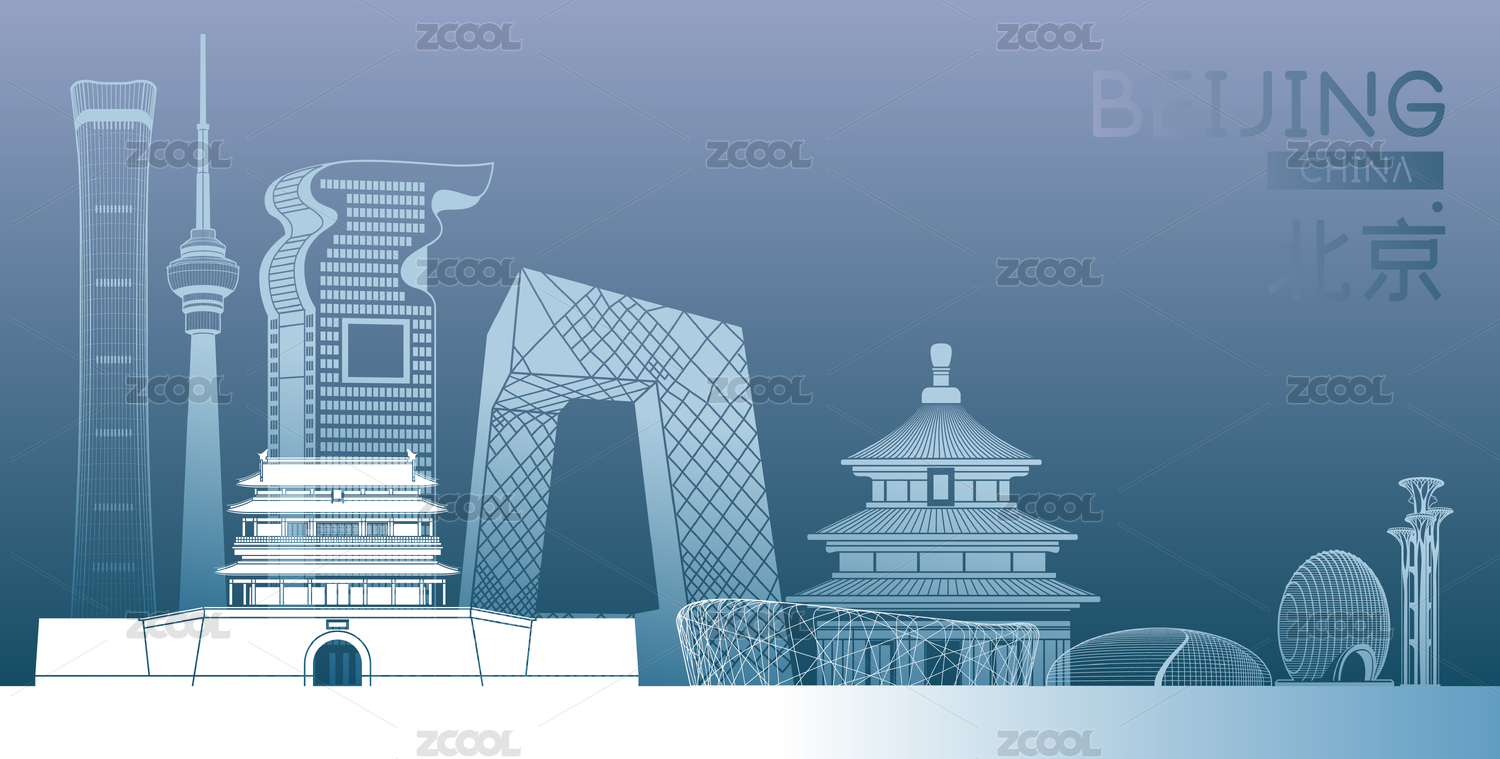 中国北京市城市天际线矢量插画网页版蓝色