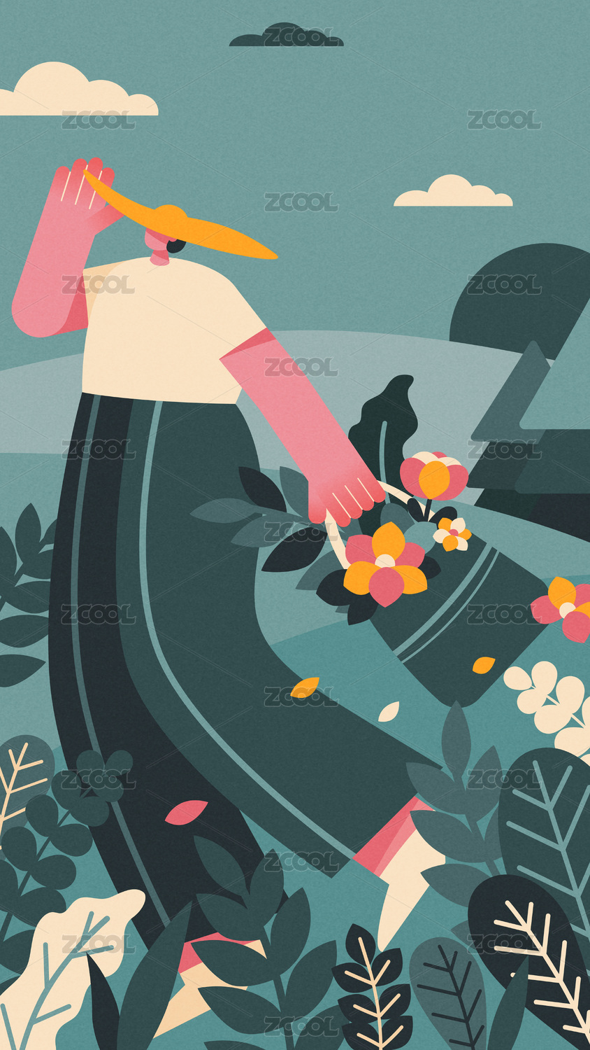 森系少女插画