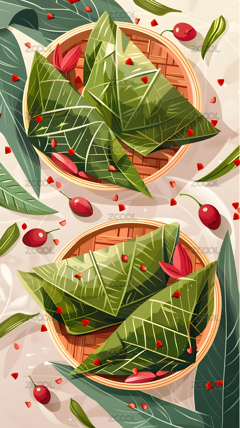 国风端午节粽子的插画