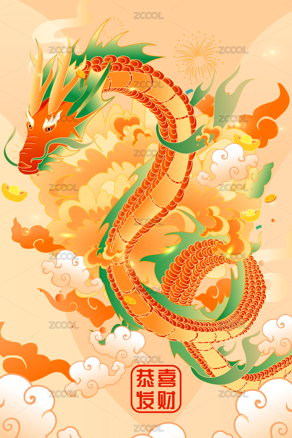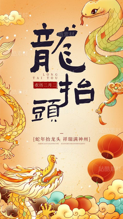 卡通二月龙抬头喜庆国潮中国风背景矢量插画