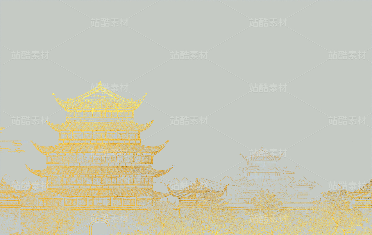 新中式国风亭台楼阁建筑工装背景墙壁画