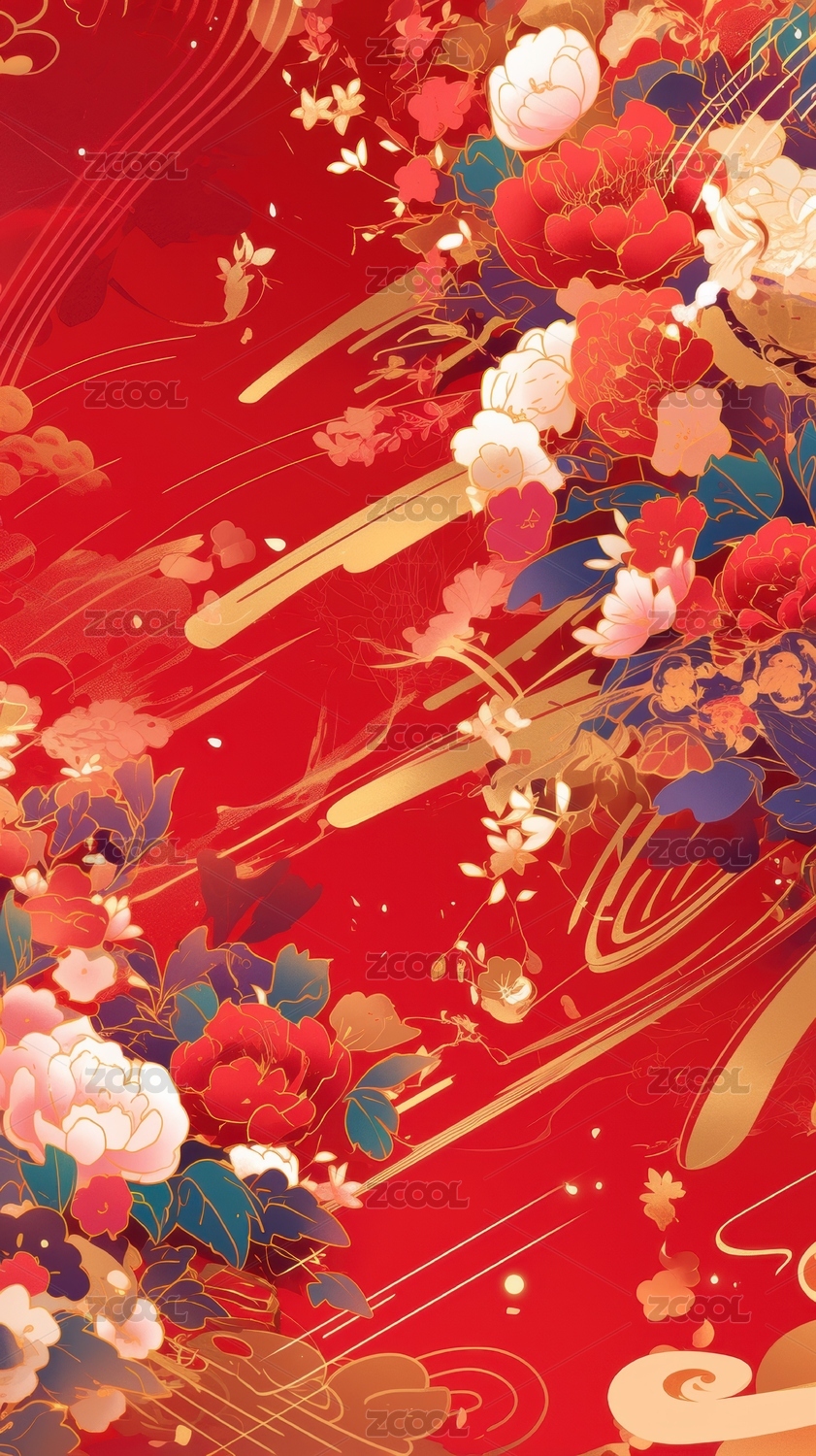 竖版喜庆新年国潮手写书法拜年祝福春联插画
