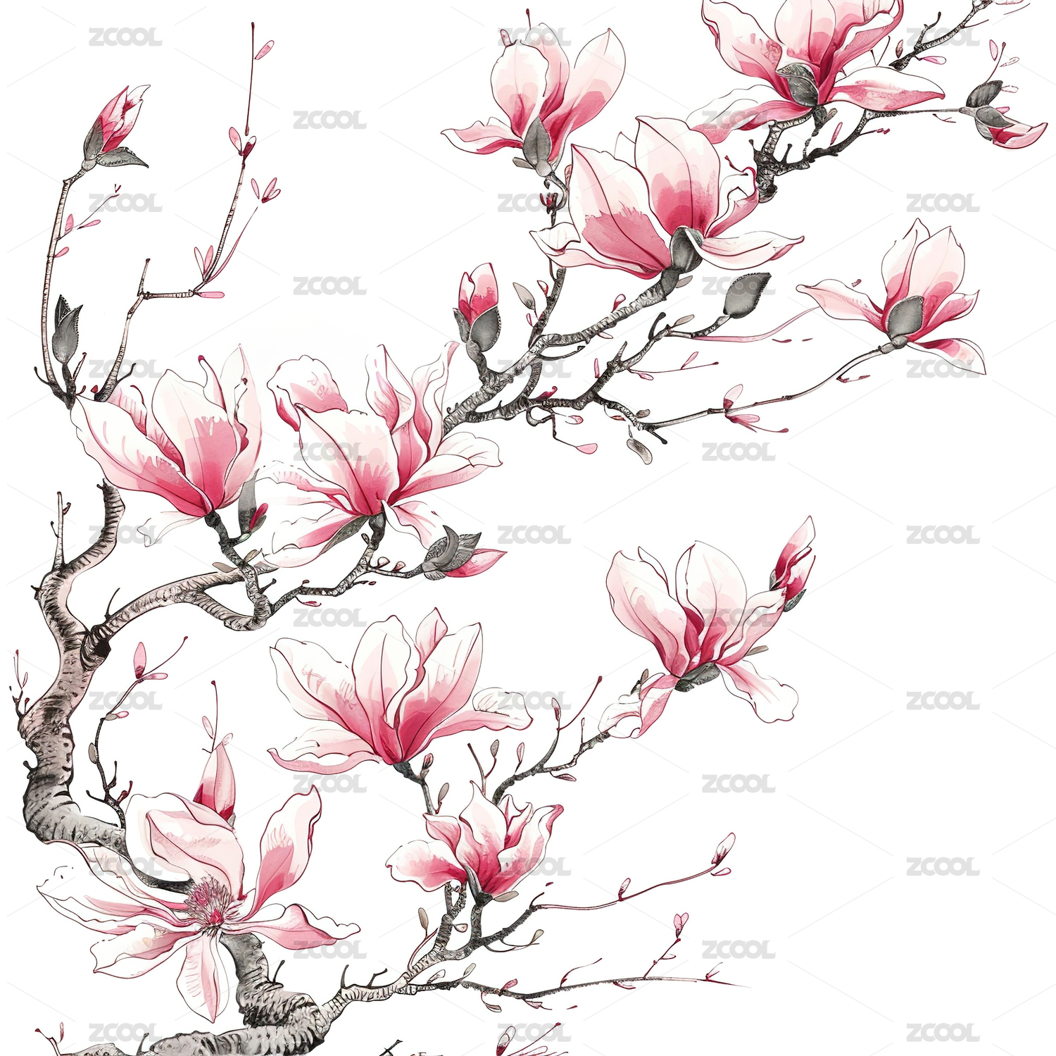 玉兰 白玉兰 花卉 传统国风水墨矢量素