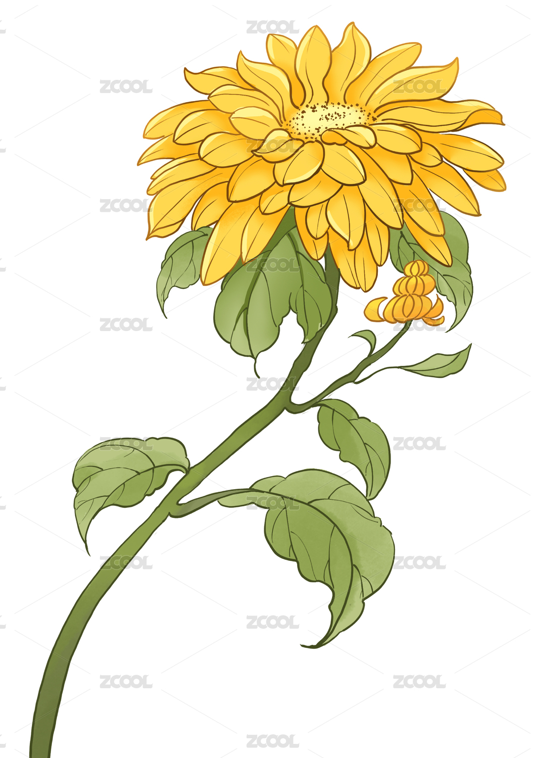 传统文化元素 菊花 线稿 白描 剪影 手绘
