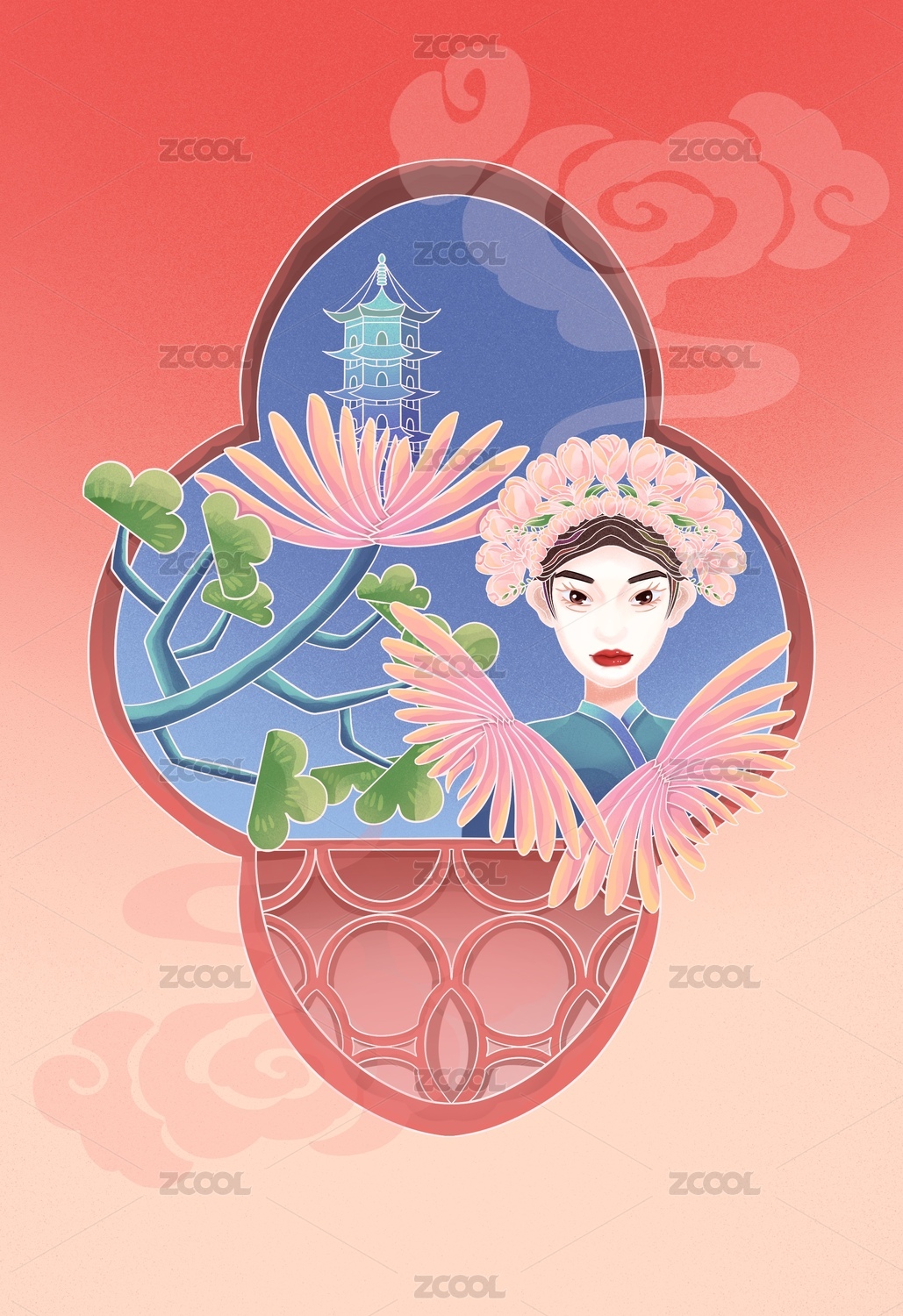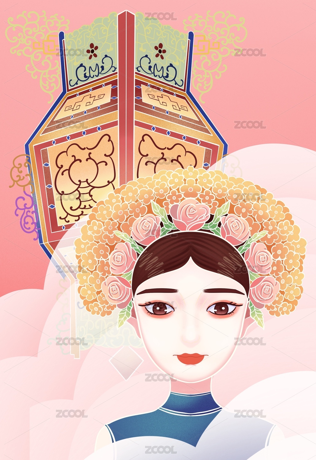 中国风唐朝皇妃美人牡丹祥云纹样国潮插画
