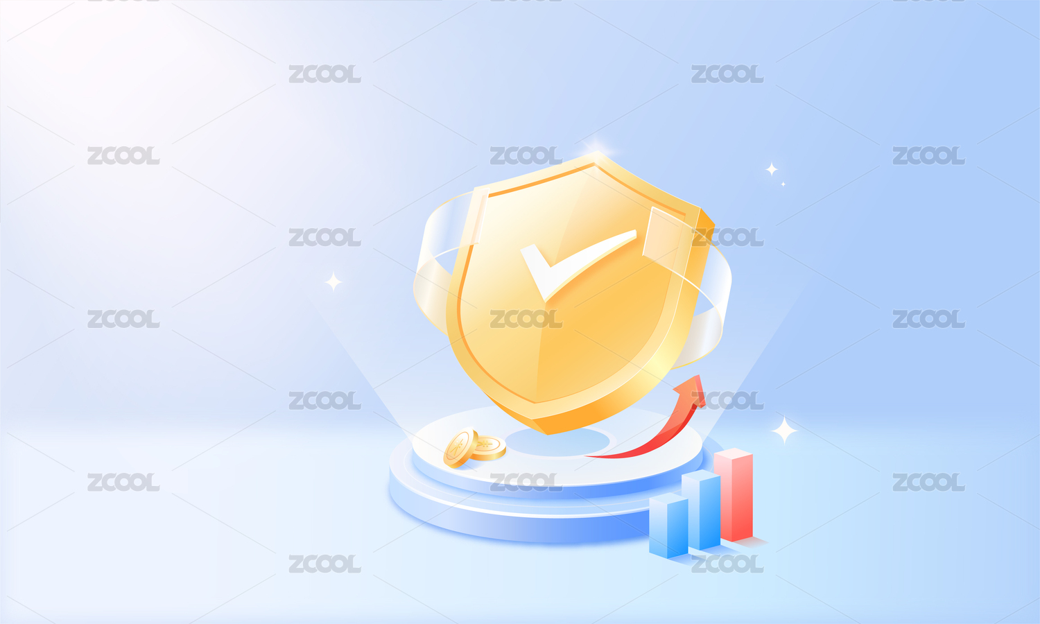 3D金融理财红盾牌保障安全 红色上涨箭头