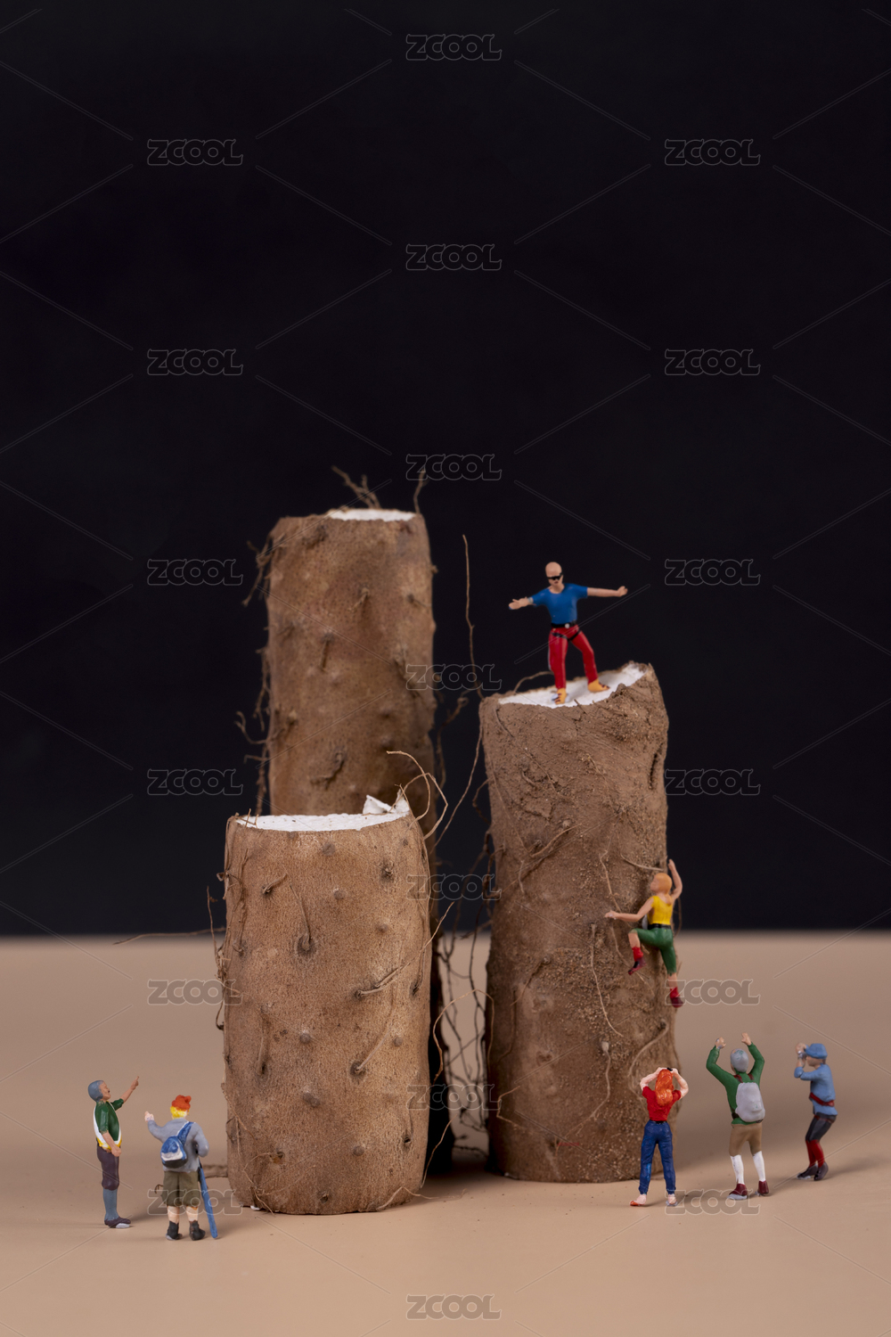 哈密瓜上正在攀岩的探险者