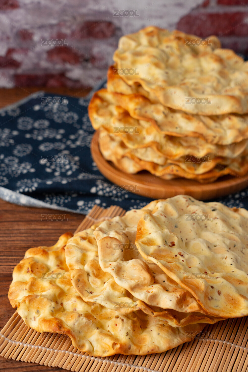 放在木盘子上的香酥烤馍