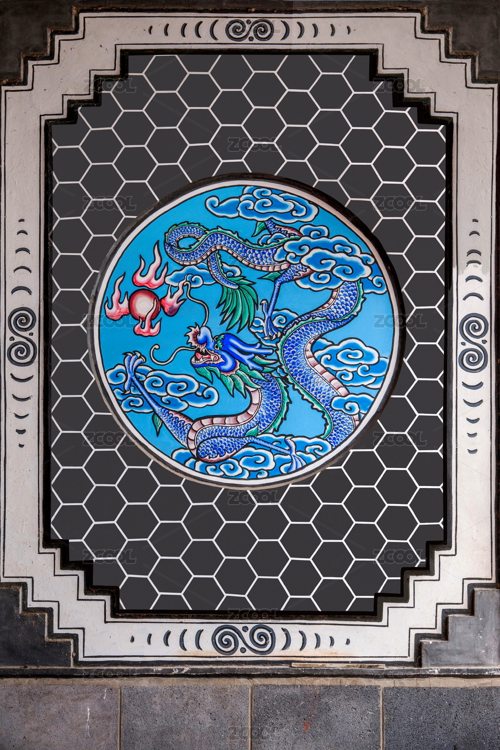 福州中式建筑屋顶生动的中国龙图腾雕刻形象