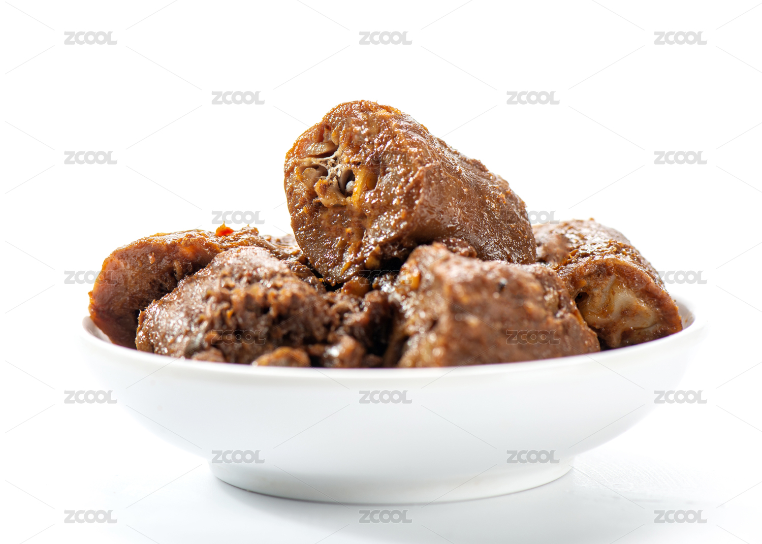 木纹背景上摆放的麻辣黑鸭鸭脖