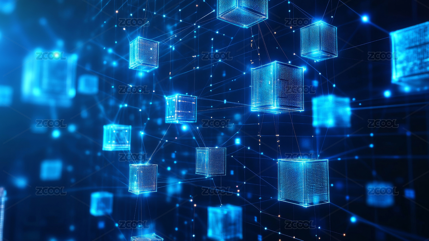 三维地形图,等高线。抽象的点线科技背景,类似云端数据连接、区块链、神经网络的概念。