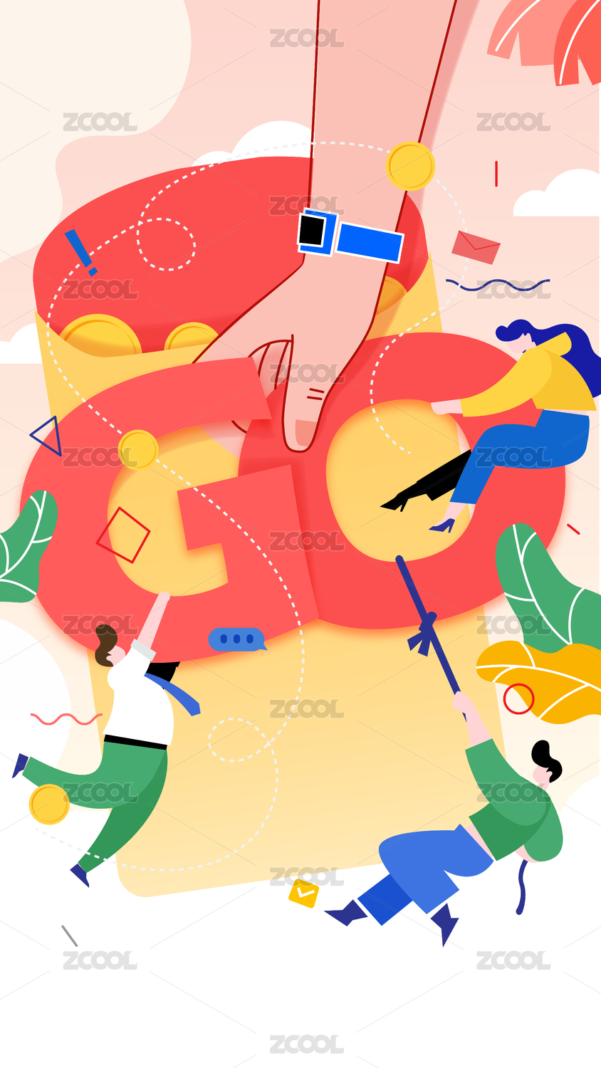 卡通互联网理财红包金融活动背景矢量插画