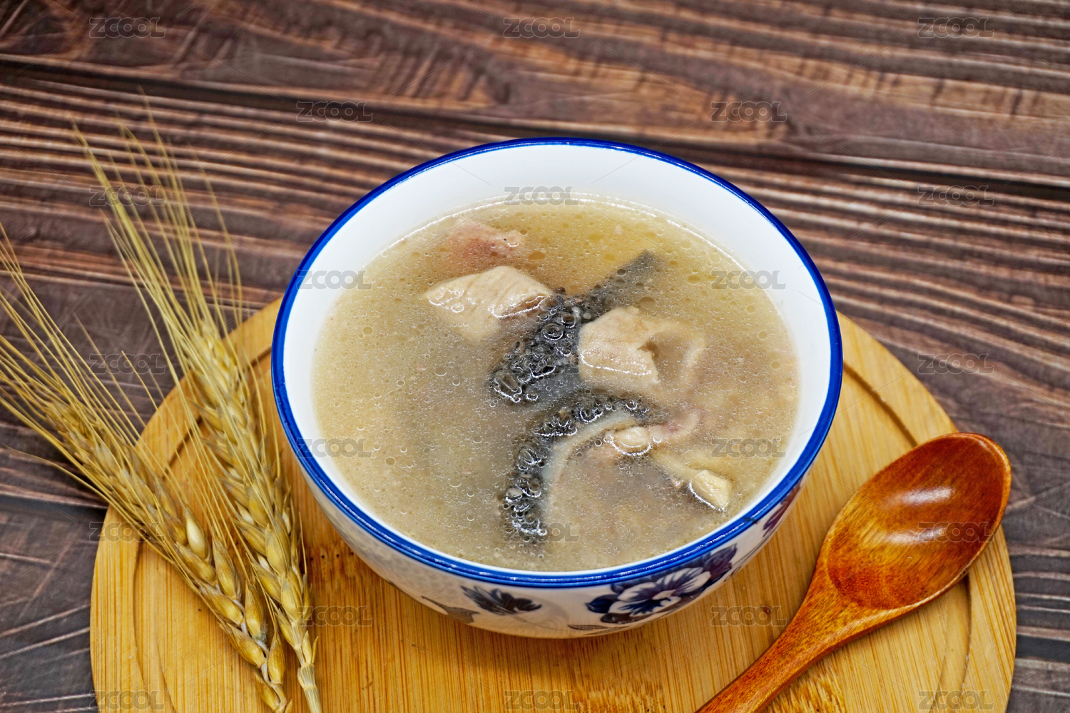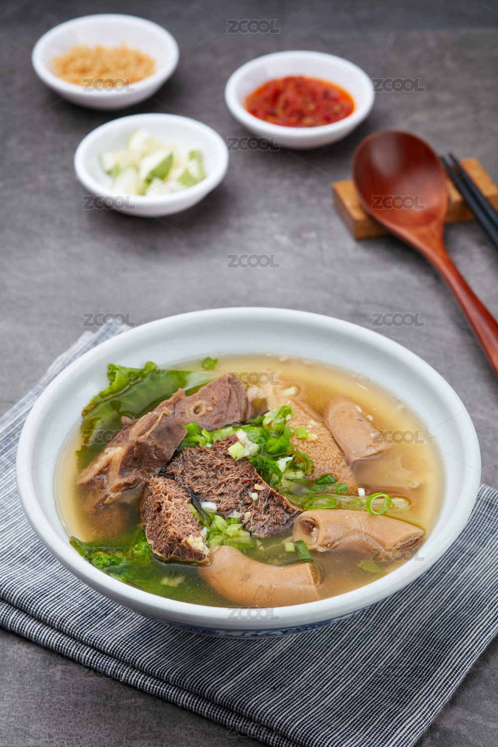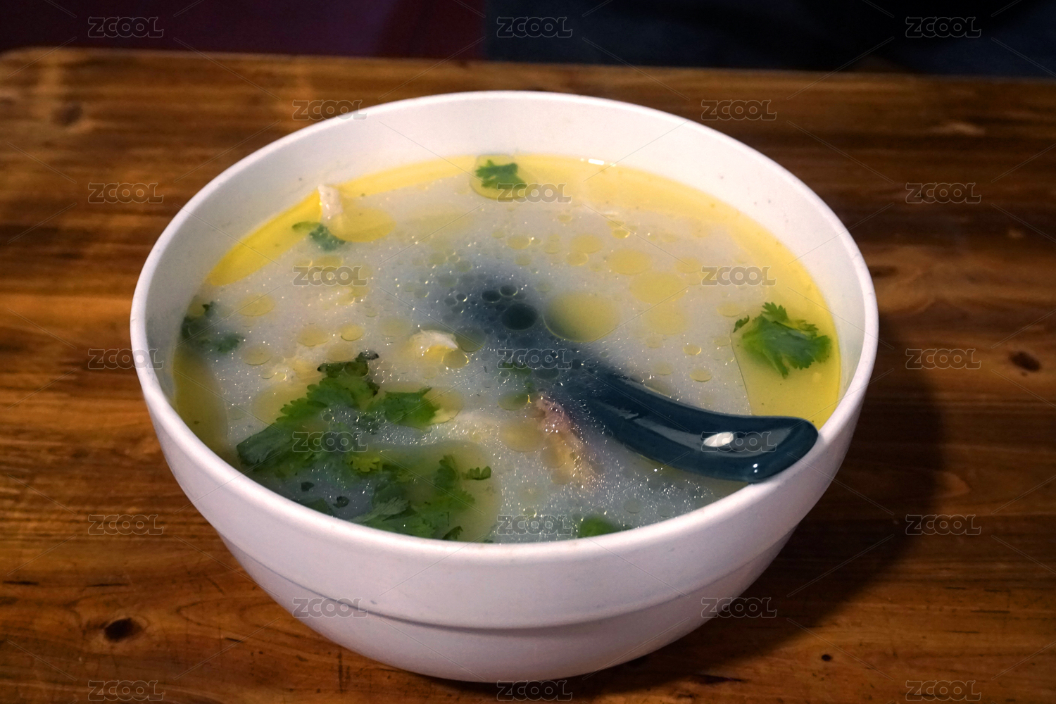 木桌背景一碗牛杂汤