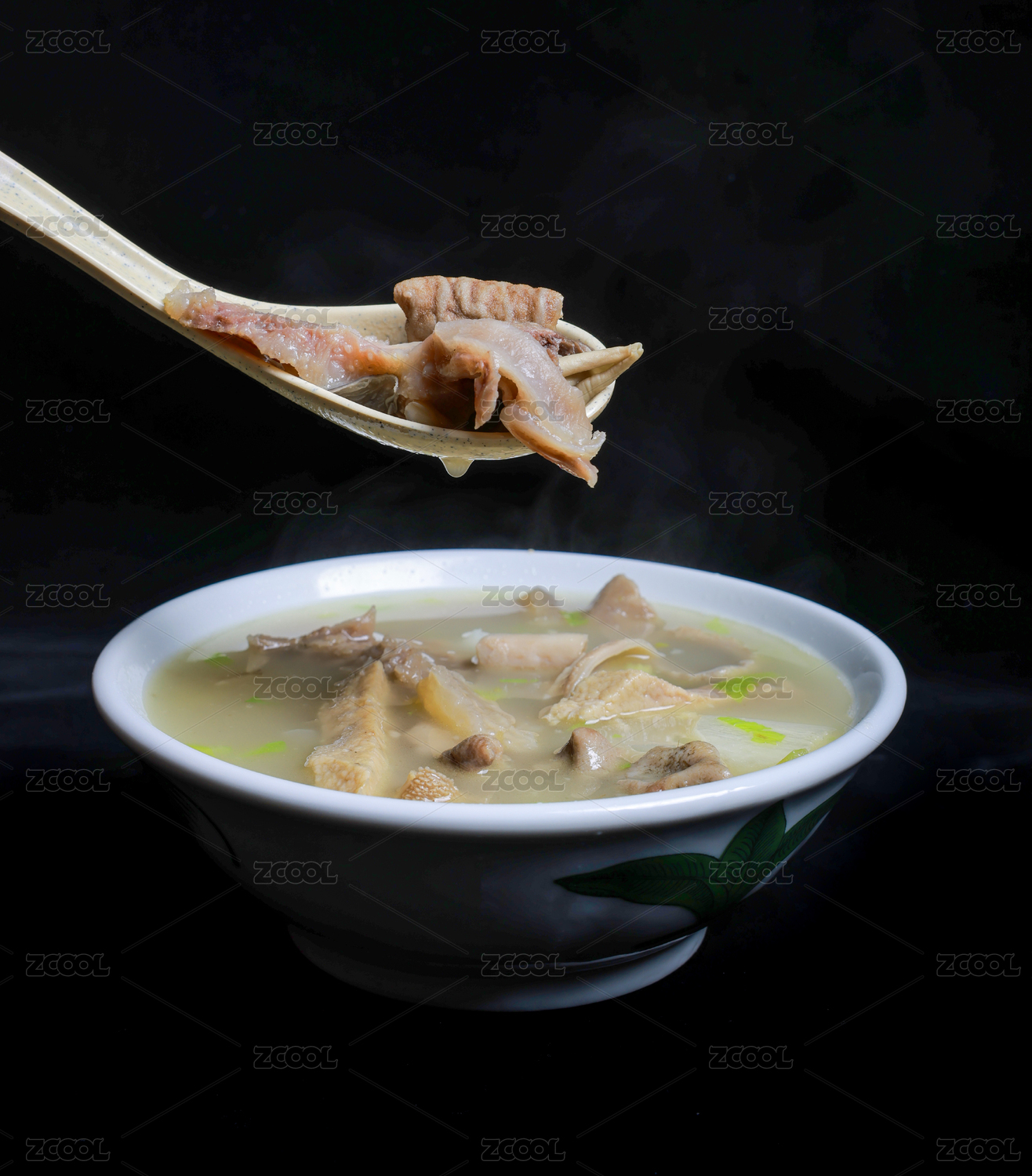 白色背景一碗牛杂汤