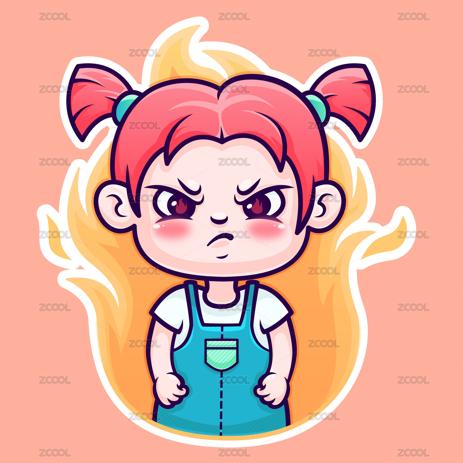 生气发火的红发小女孩