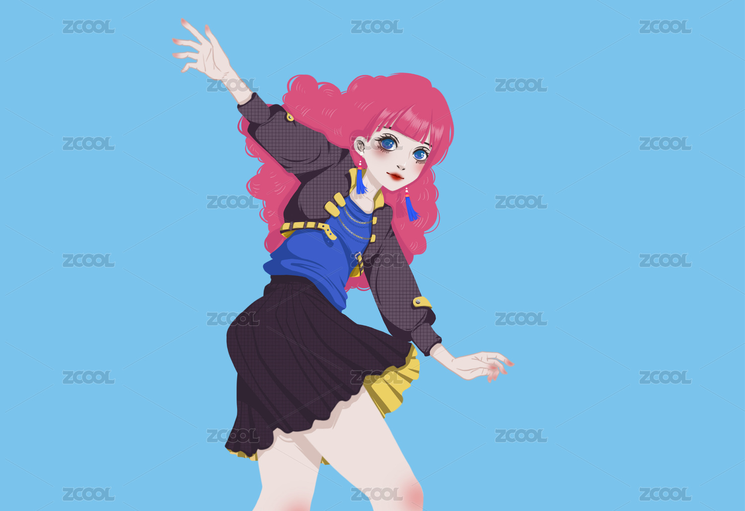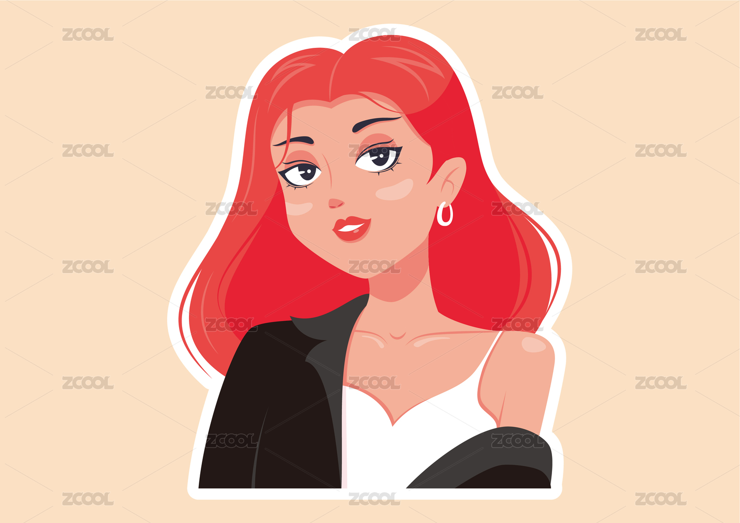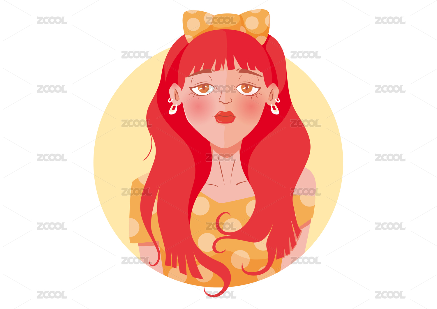 时尚潮流红发女孩矢量插画